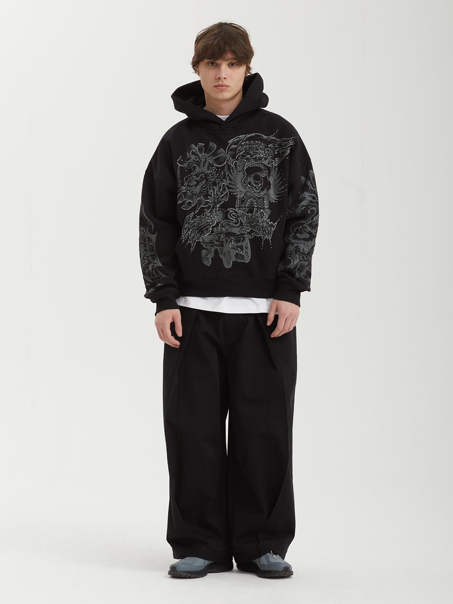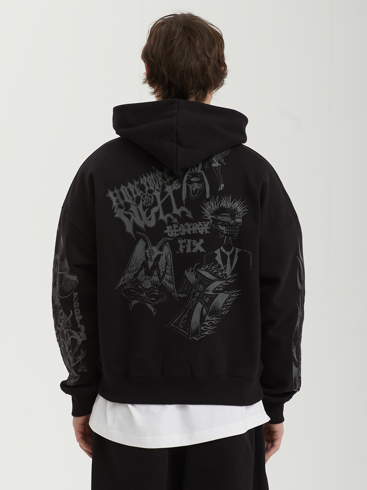 - Графические принты на груди, спине и рукавах