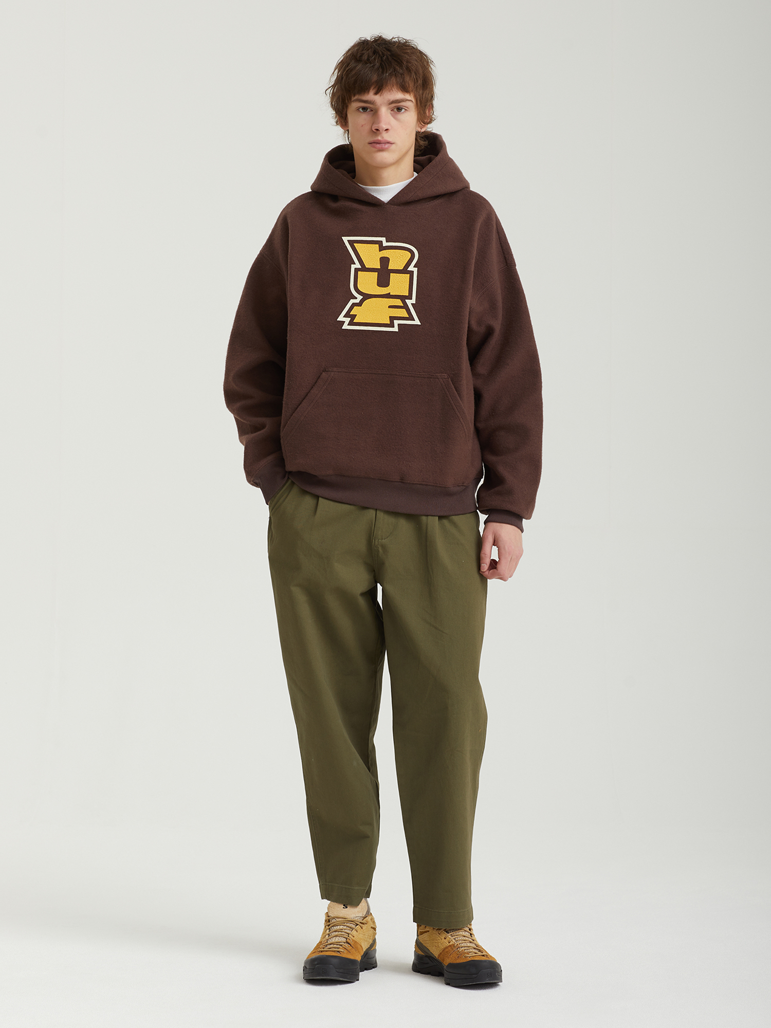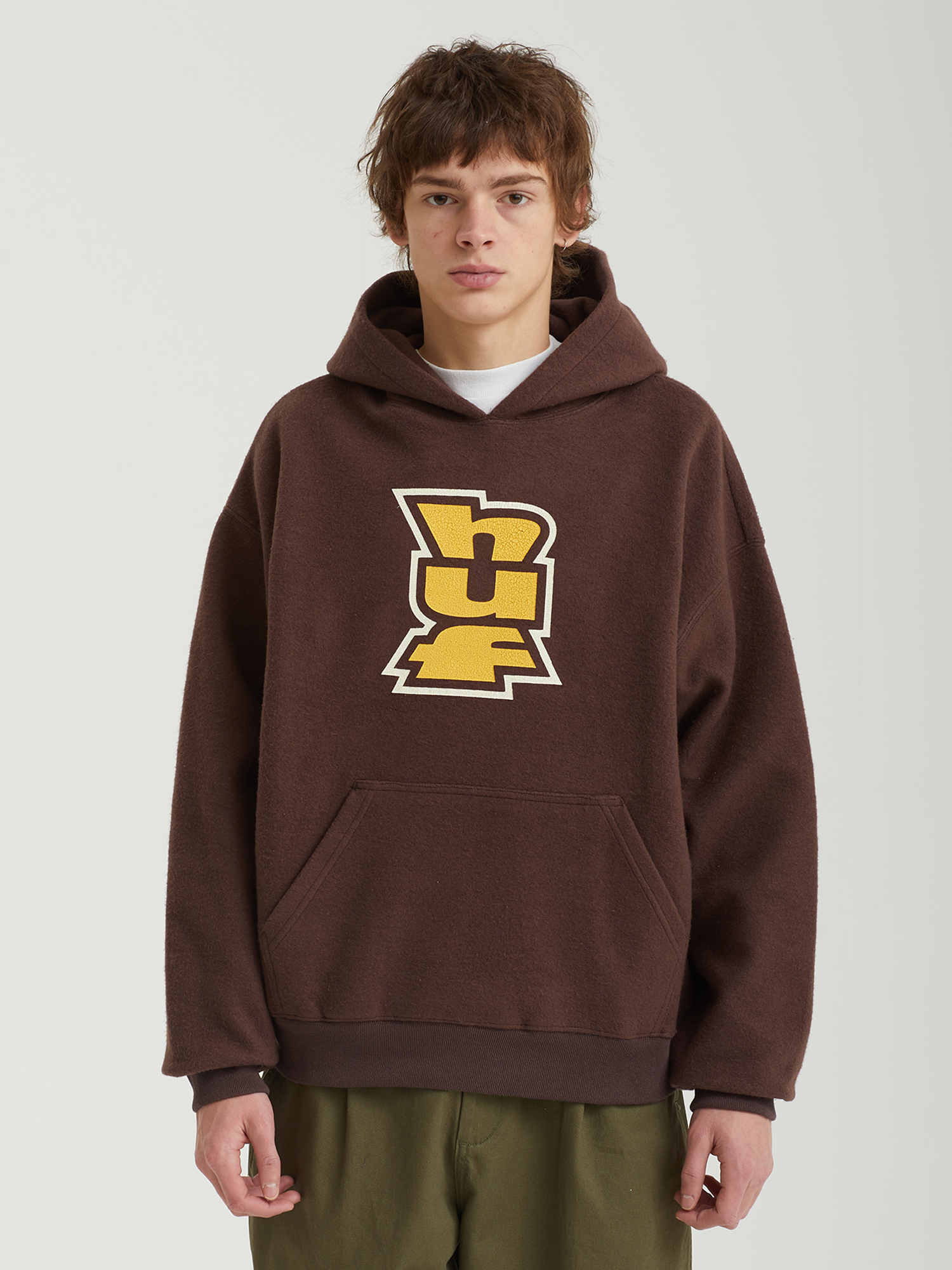 Худи Huf из плотного смесового материала с ворсистым винишем. Изделие дополнено принтом с логотипом бренда.
