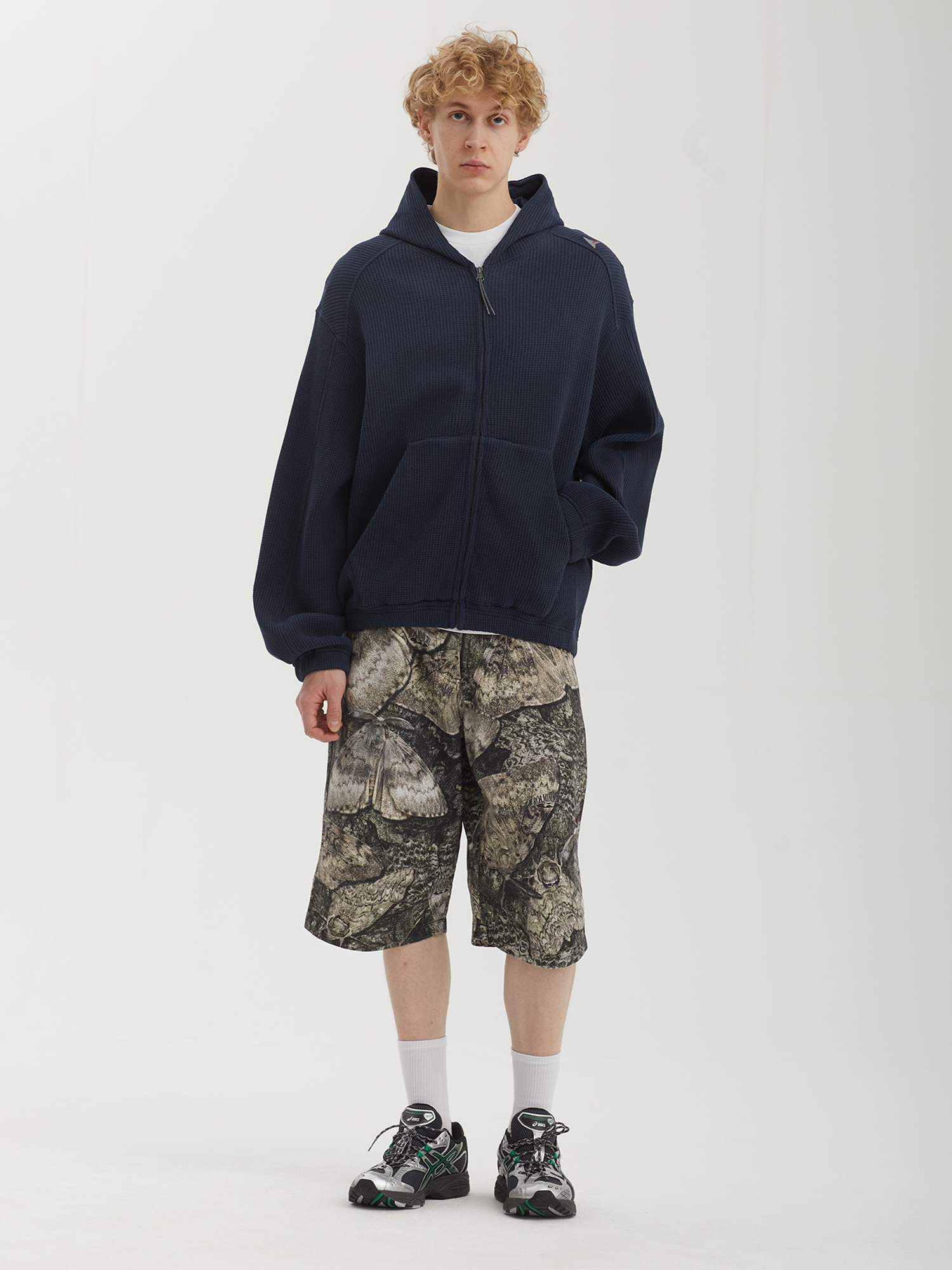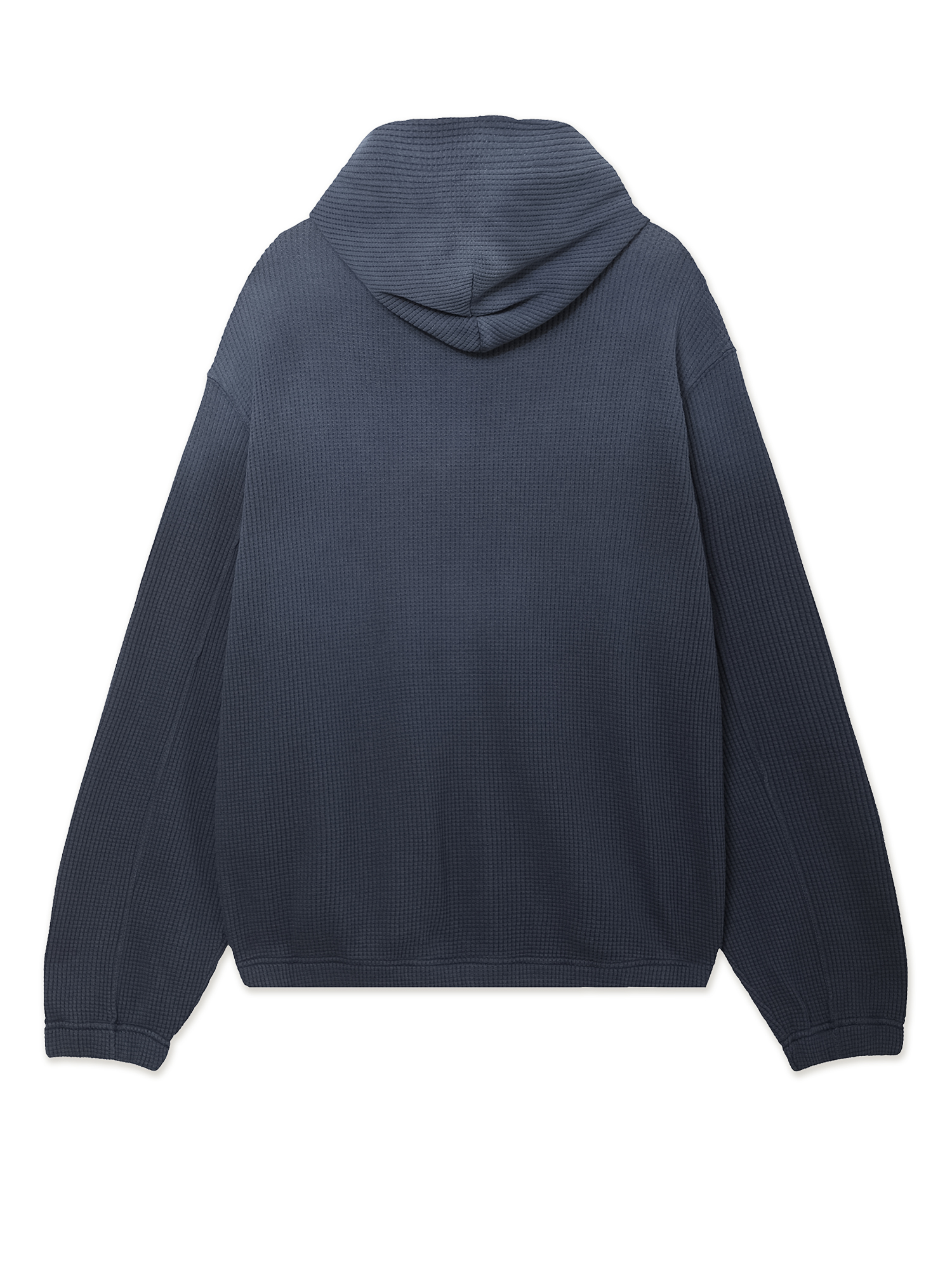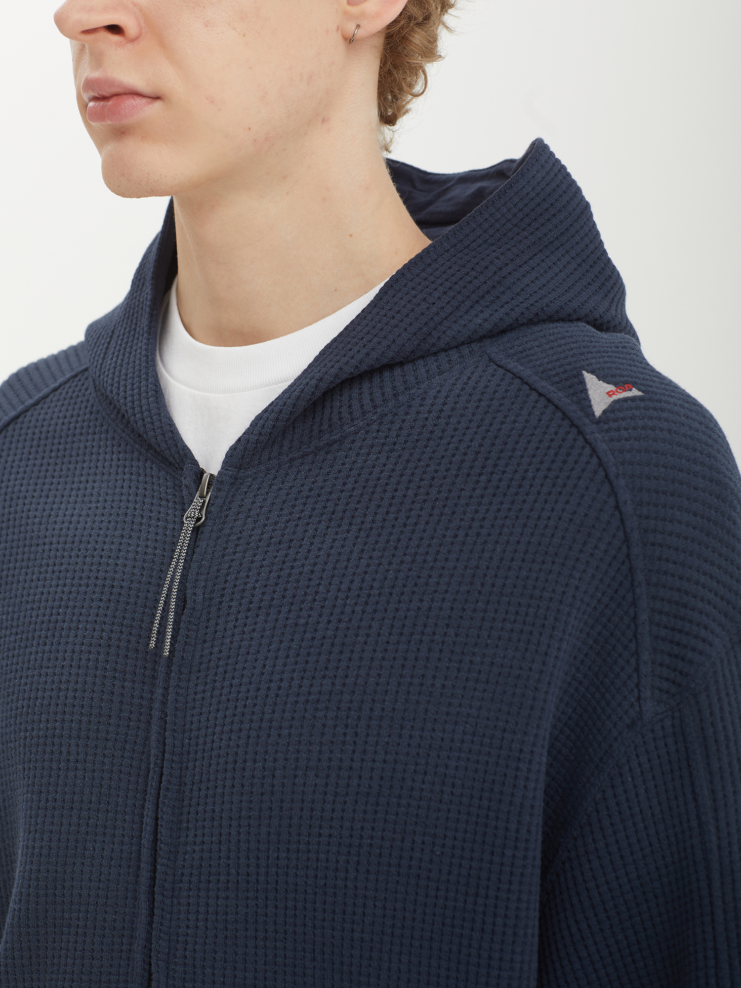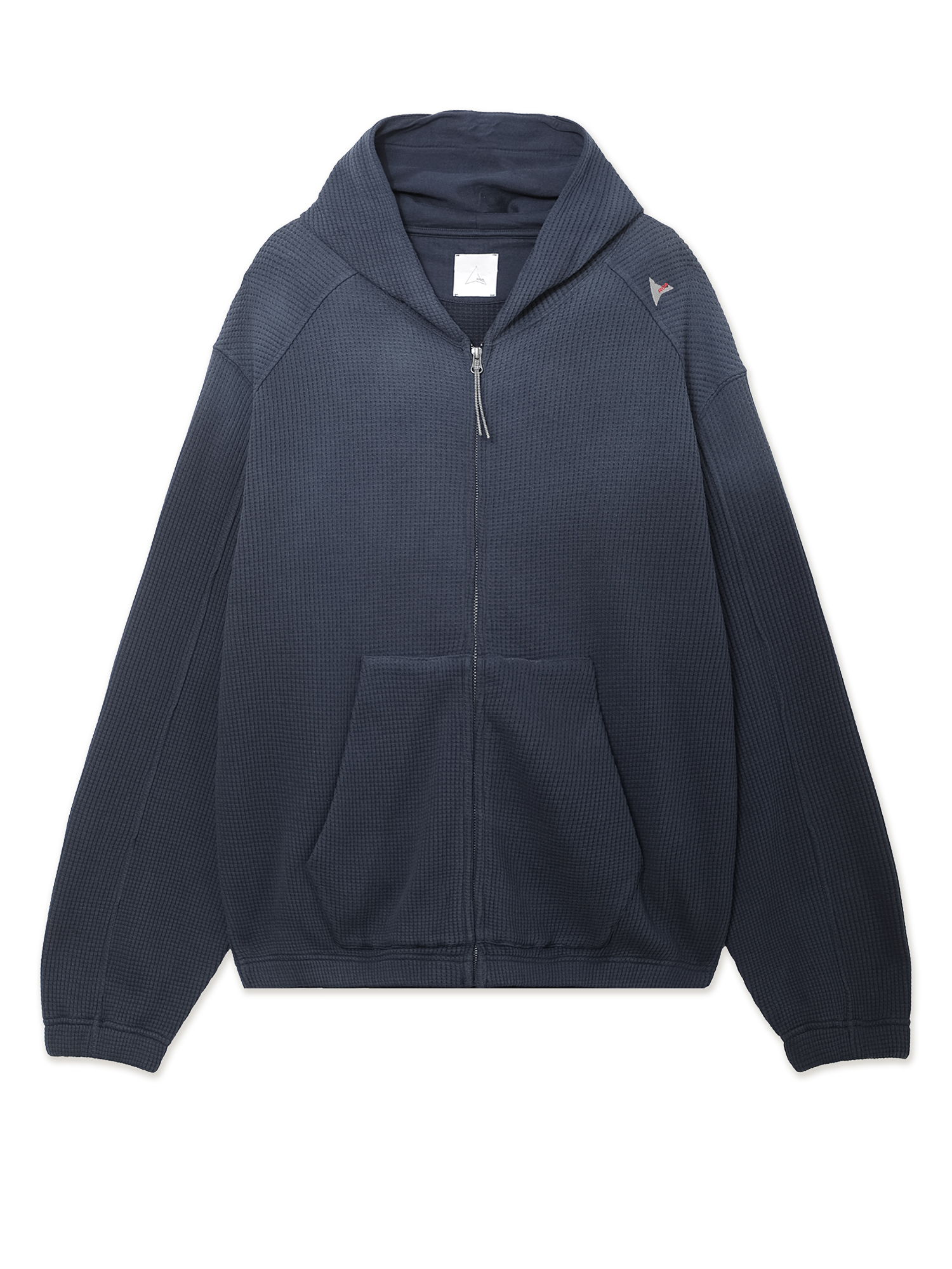 Толстовка с капюшоном на молнии ROA из плотного вафельного трикотажа. Изделие окрашено с эффектом выцветания ткани.