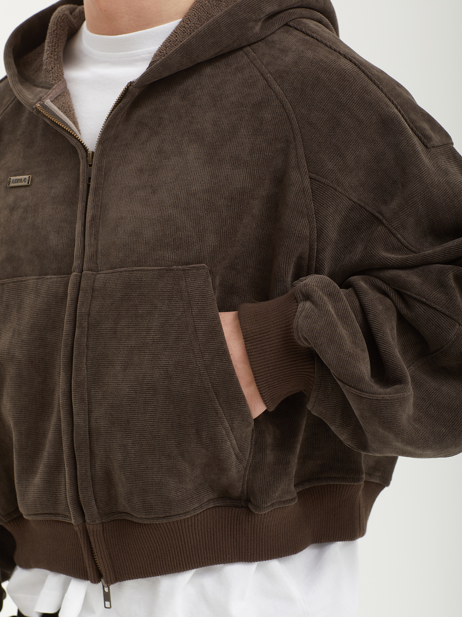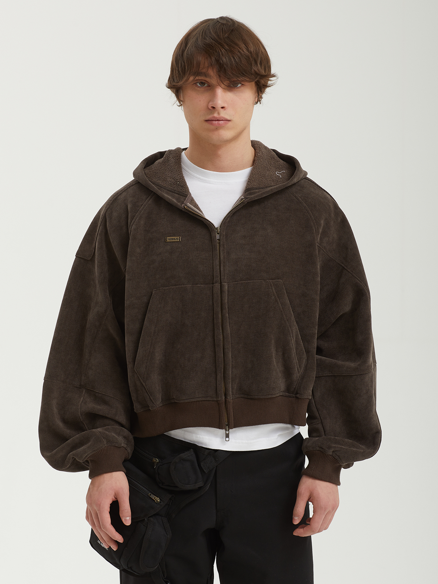 Худи на молнии Ajobyajo из мягкого велюрового материала. Изделие собрано из панелей.