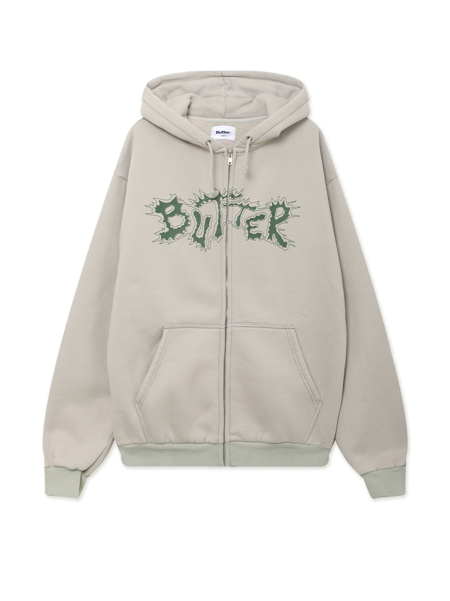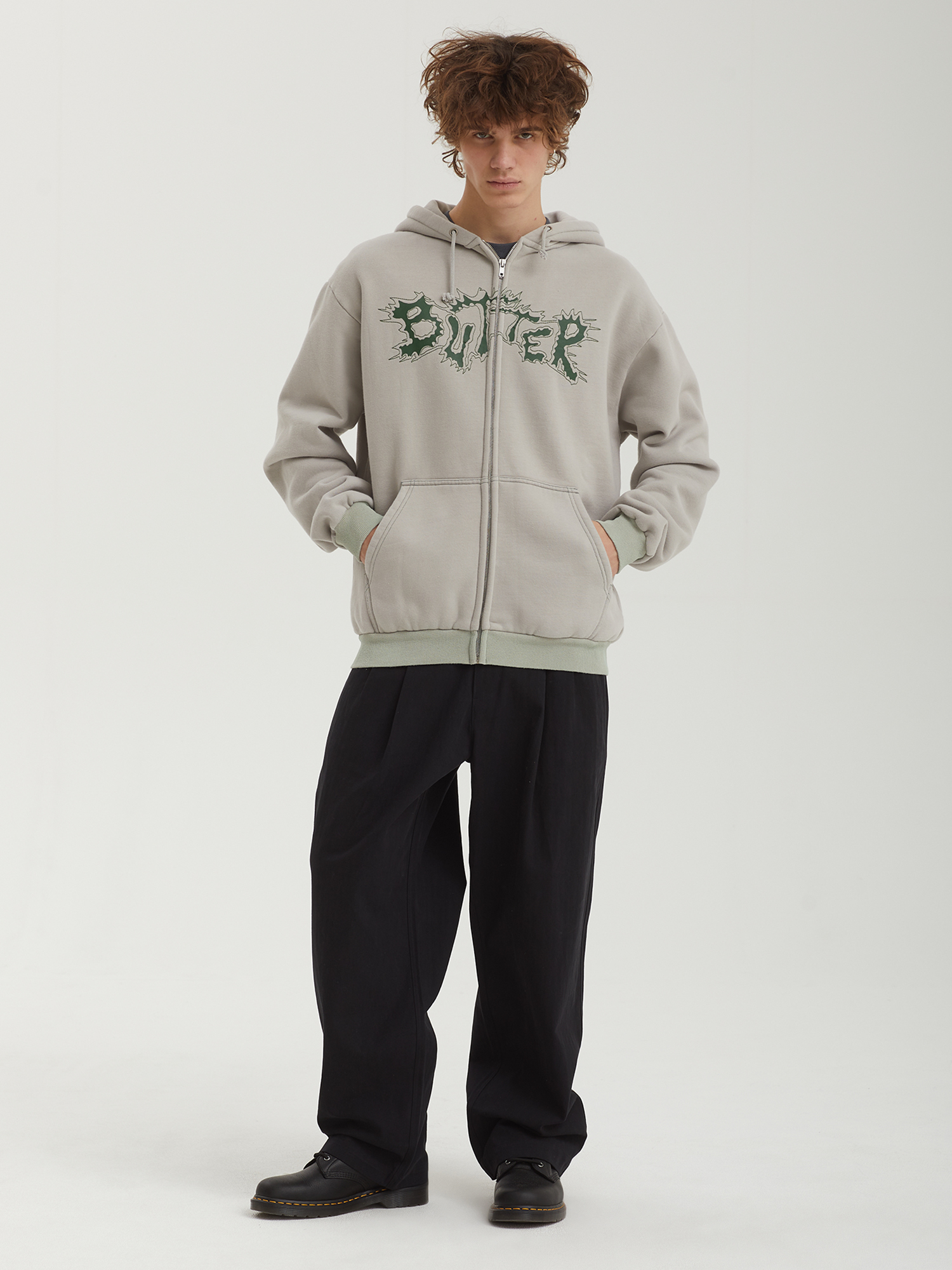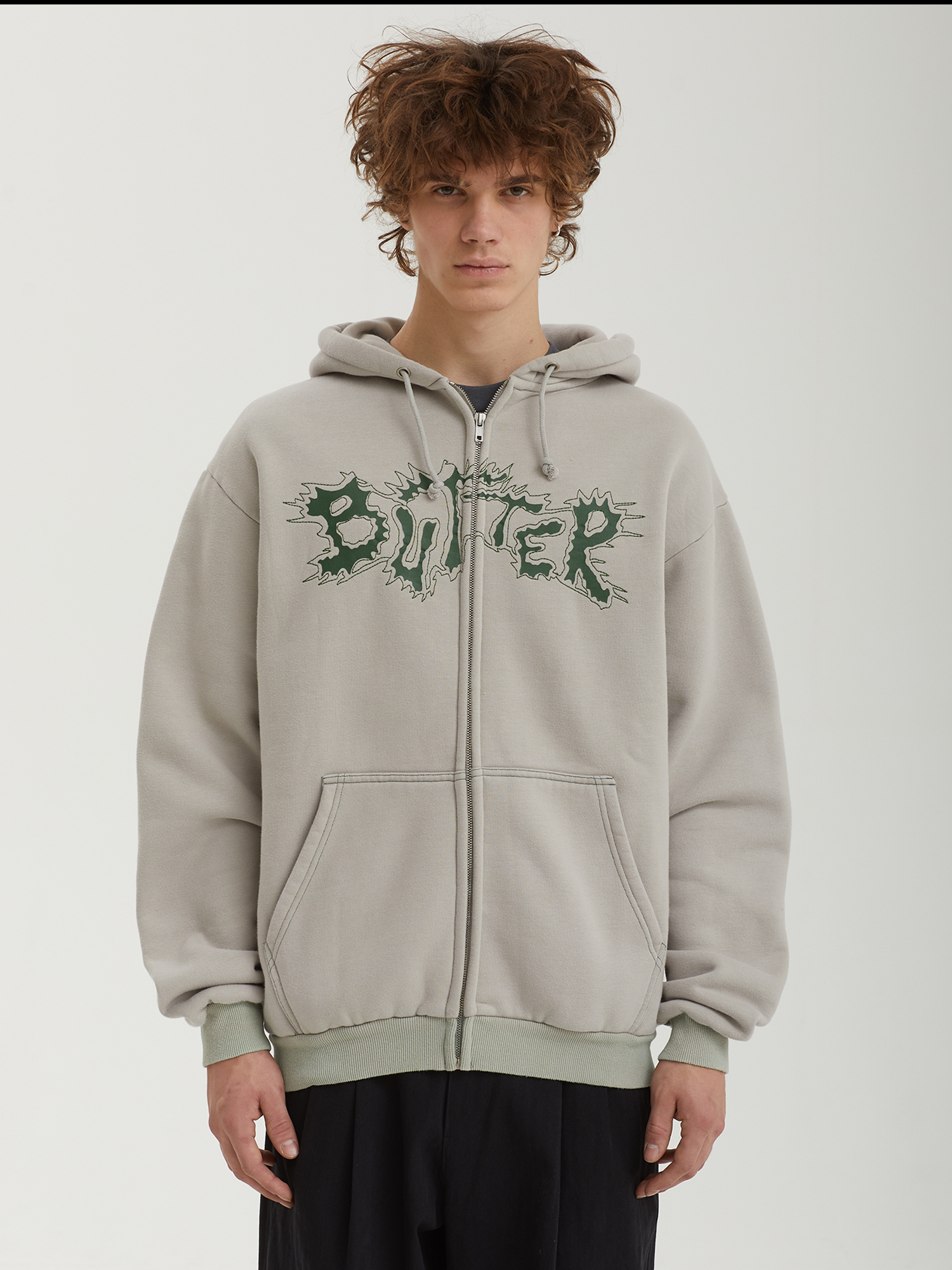 Худи на молнии с логотипом Butter Goods из смесового материала с ворсистой изнанкой. Изделие выстирано для мягкости и легкого винтажного эффекта.