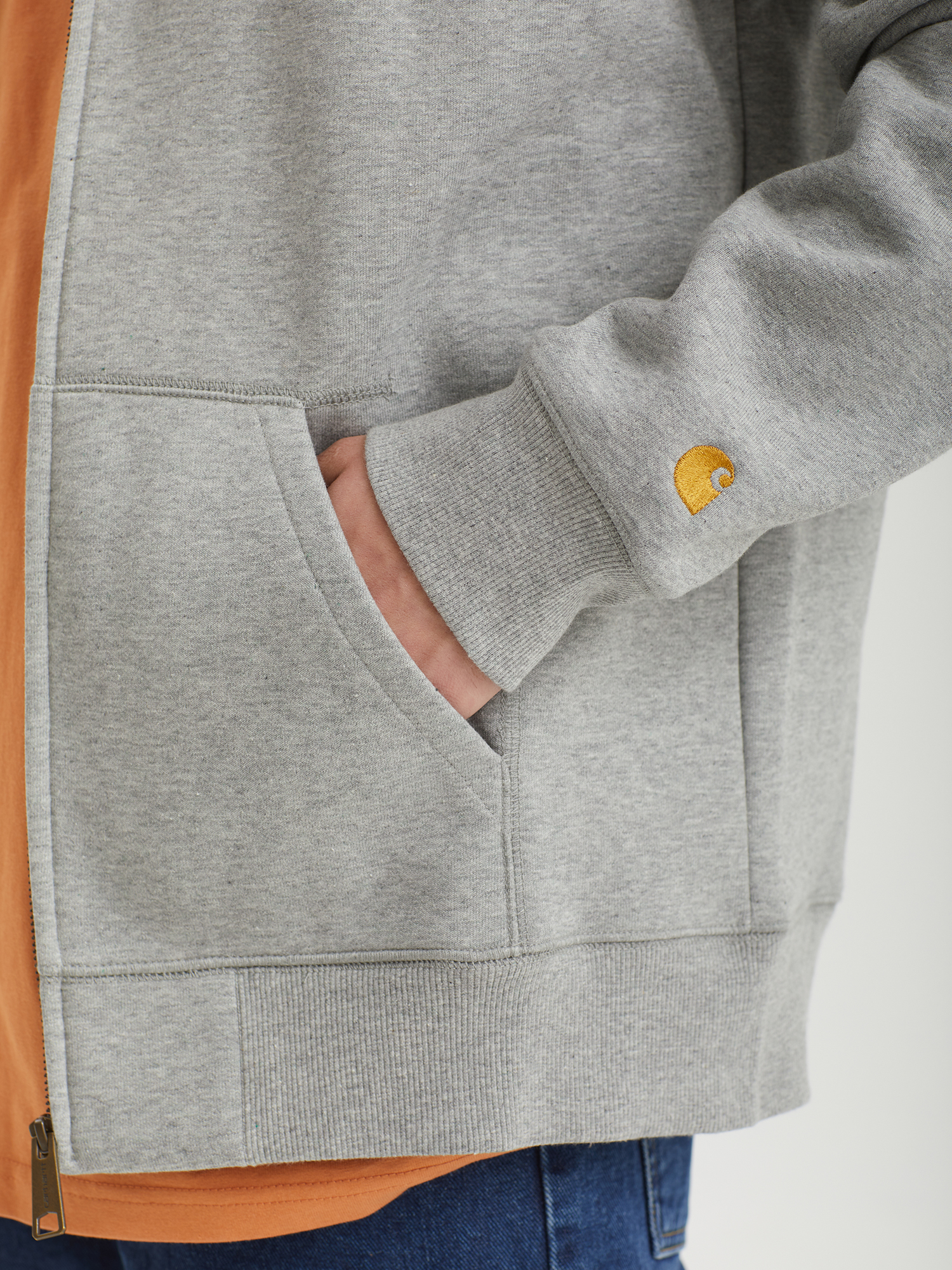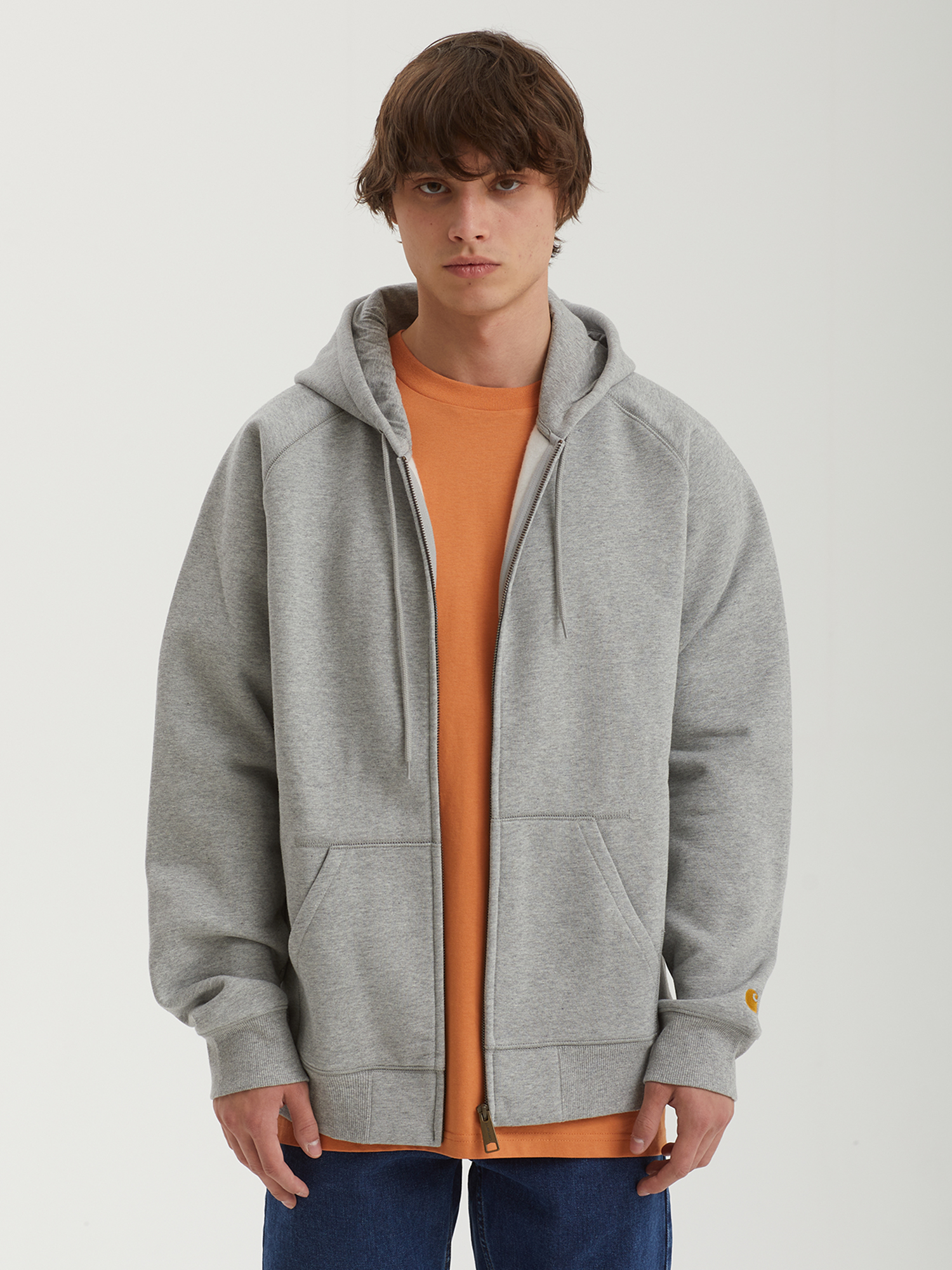 Худи на молнии Carhartt WIP из плотного материала ворсистой изнанкой. Плоская обработка швов, брендинг на молнии и рукаве.