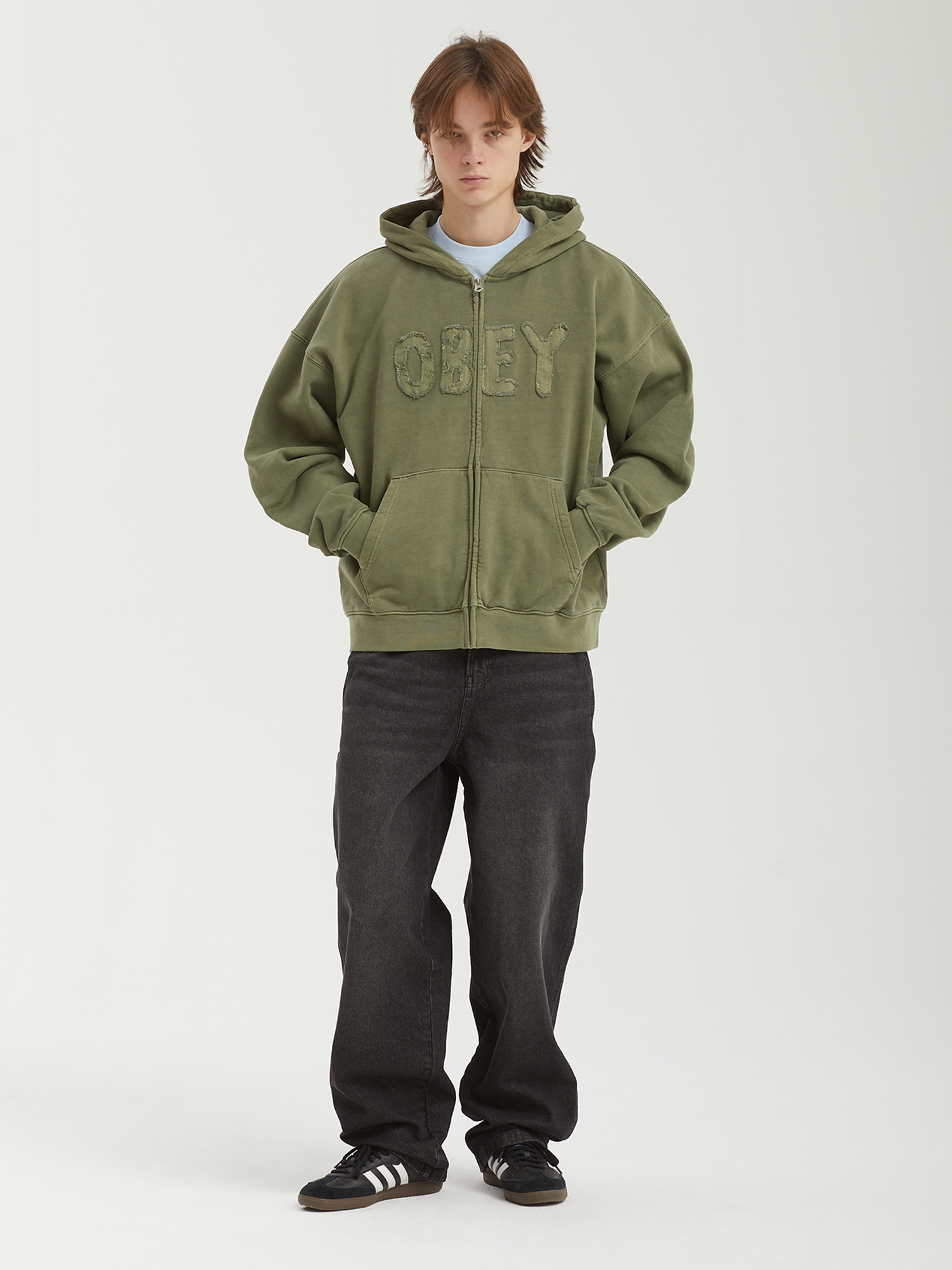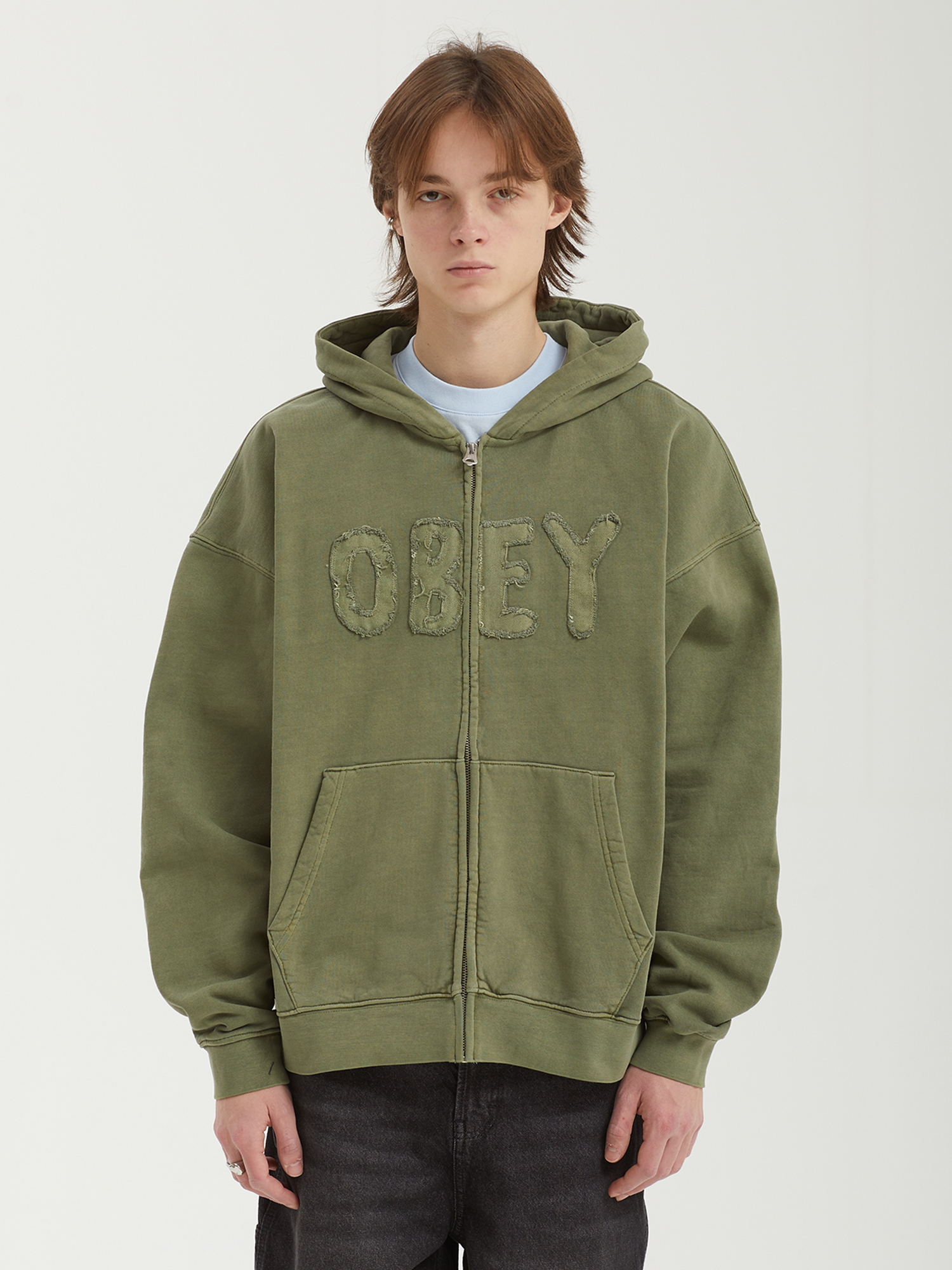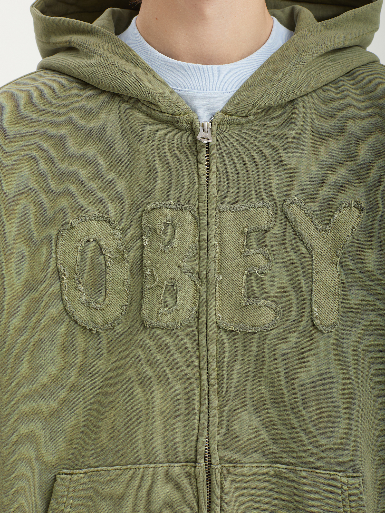 Худи на молнии Obey из плотного хлопкового материала с ворсистой изнанкой.