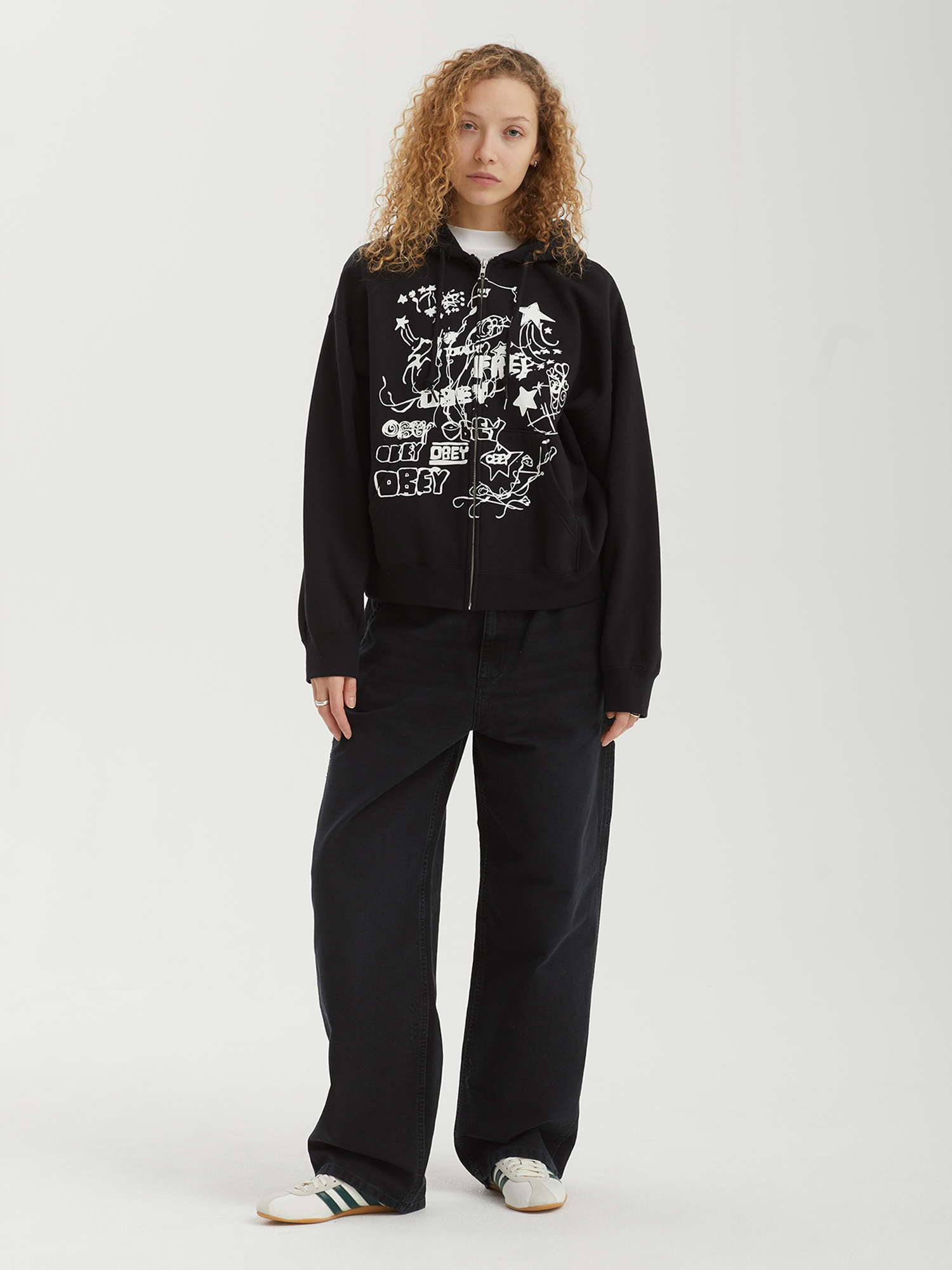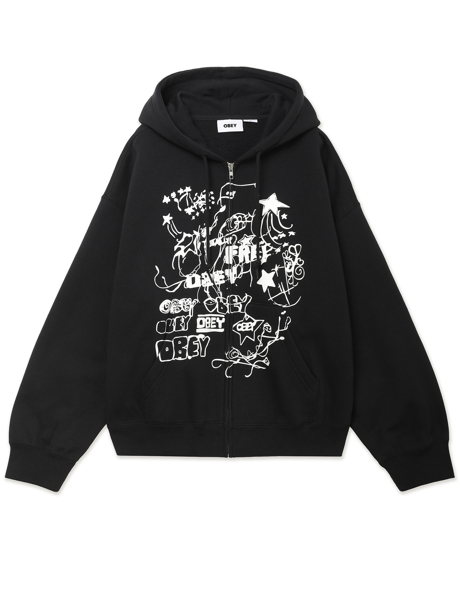 Толстовка Obey изготовлена из смесового трикотажа с мягкой ворсистой изнанкой. Оверсайз-силуэт, металлическая молния, эластичная отделка по манжетам и низу обеспечивают комфортную посадку. Графический принт, нанесенный методом шелкографии, добавляет изделию характерный почерк бренда.