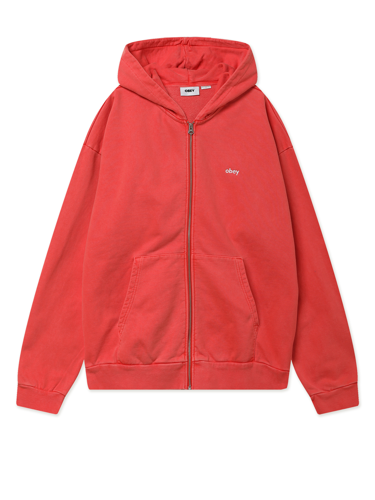 Худи на молнии Obey из плотной хлопковой ткани с ворсистой изнанкой, окрашенной пигментом для получения уникального оттенка. На груди — вышивка с шрифтовым логотипом бренда.