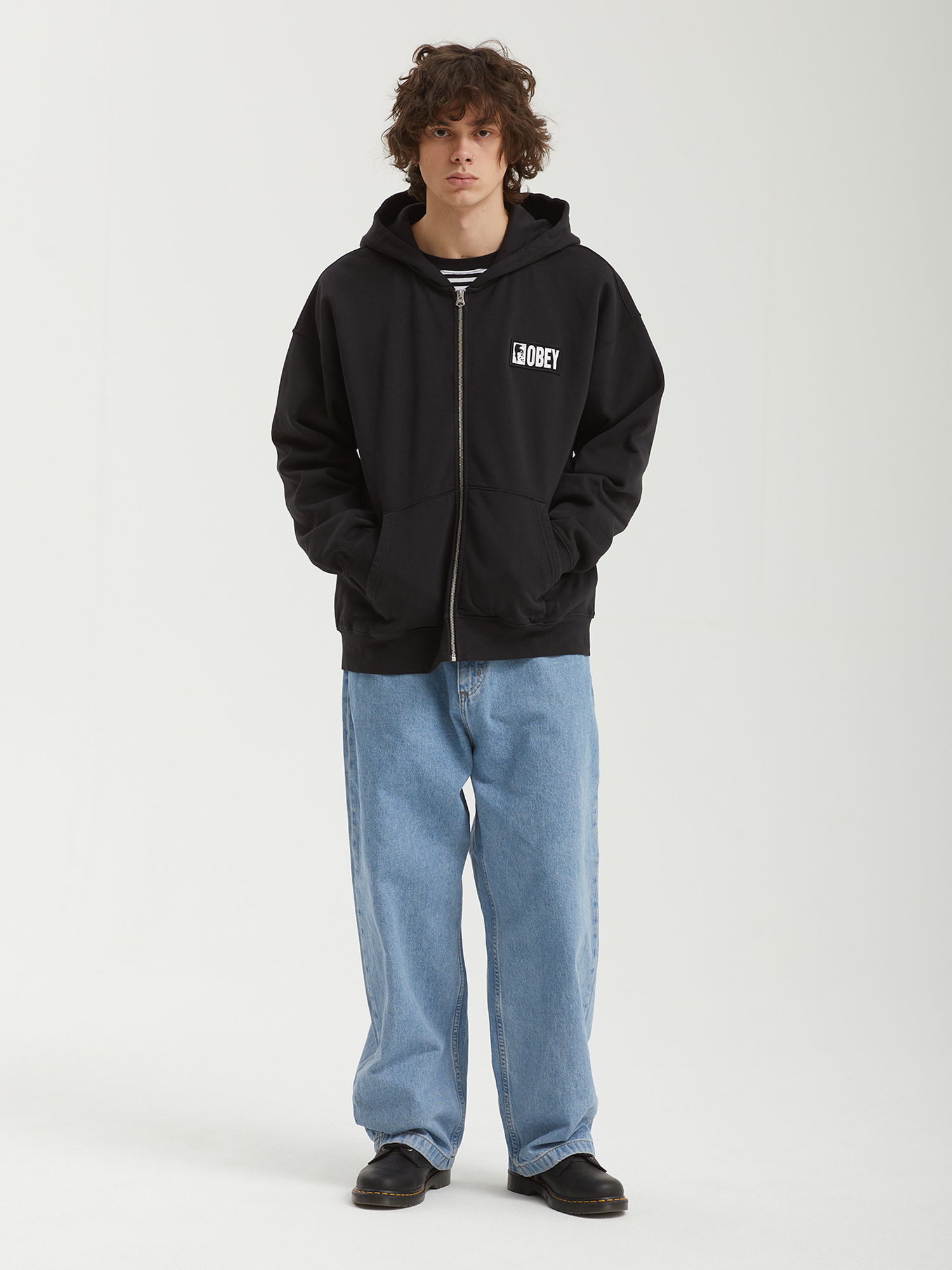 Худи на молнии Obey из плотного хлопкового материала с ворсистой изнанкой. Изделие выстирано для мягкости и легкого винтажного эффекта.