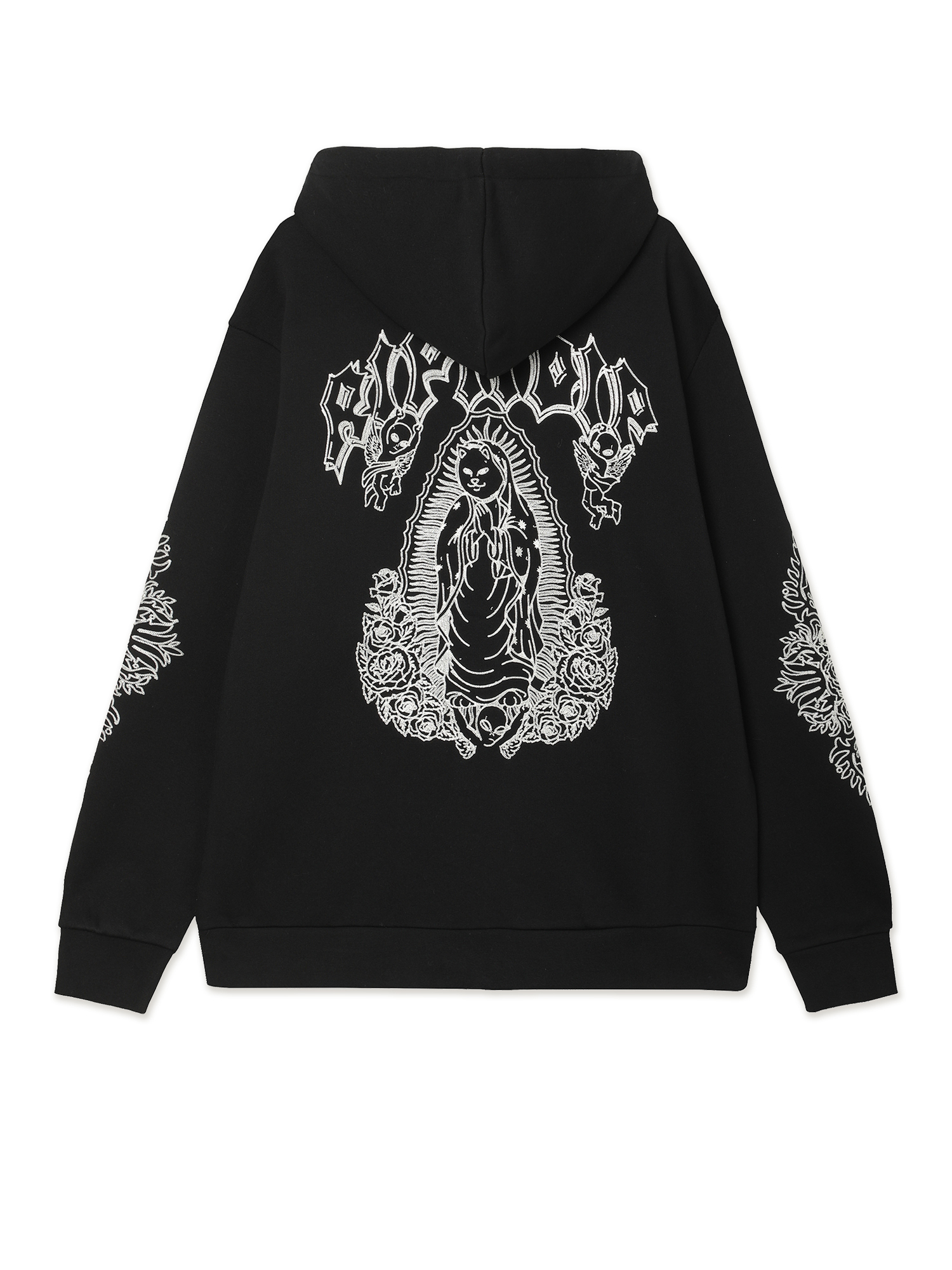 Худи на молнии Ripndip из плотной хлопковой ткани с ворсистой изнанкой. Изделие дополнено контрастными принтами с маскотом и логотипами бренда.