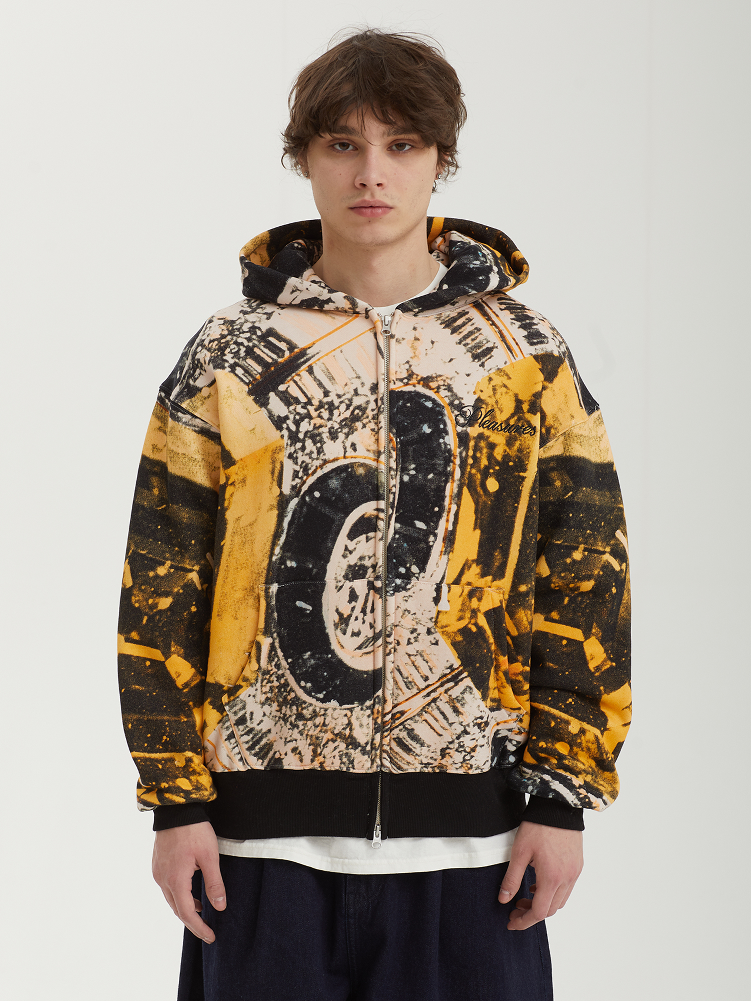 Худи на молнии Pleasures из плотного смесового материала с ворсистой изнанкой. Графика вдохновлена работами художника Ричарда Бернштейна (Richard Bernstein).