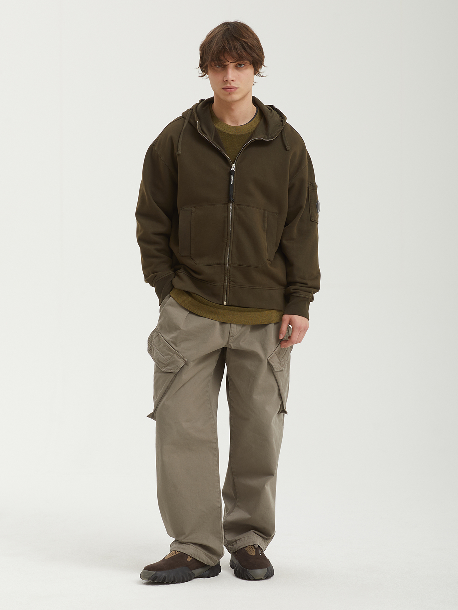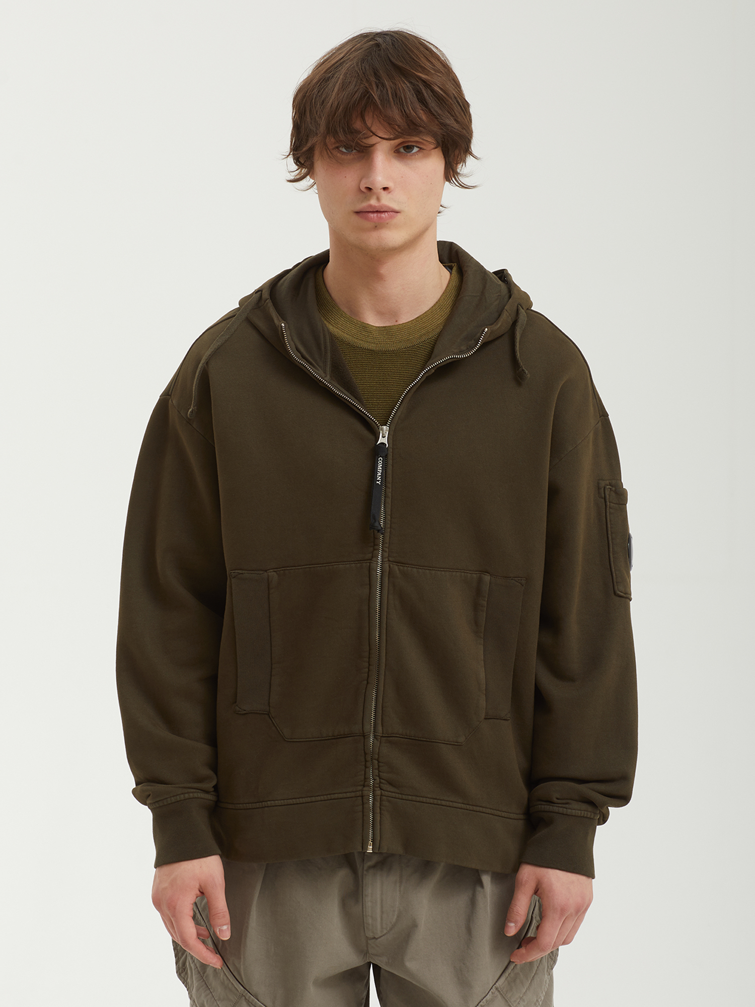 Худи на молнии C.P. Company из плотной хлопковой ткани с ворсистой изнанкой. Изделие окрашено в готовом виде.