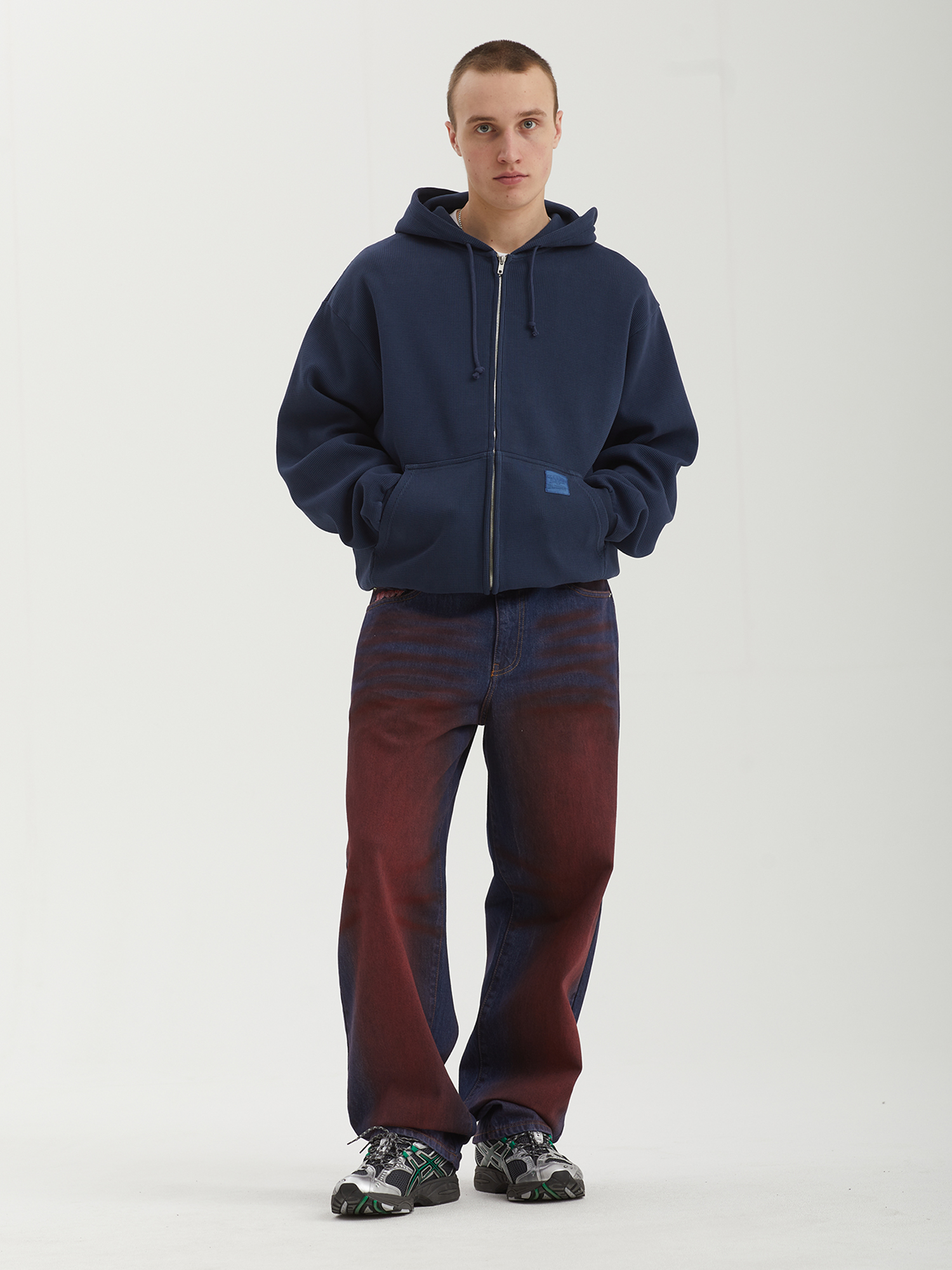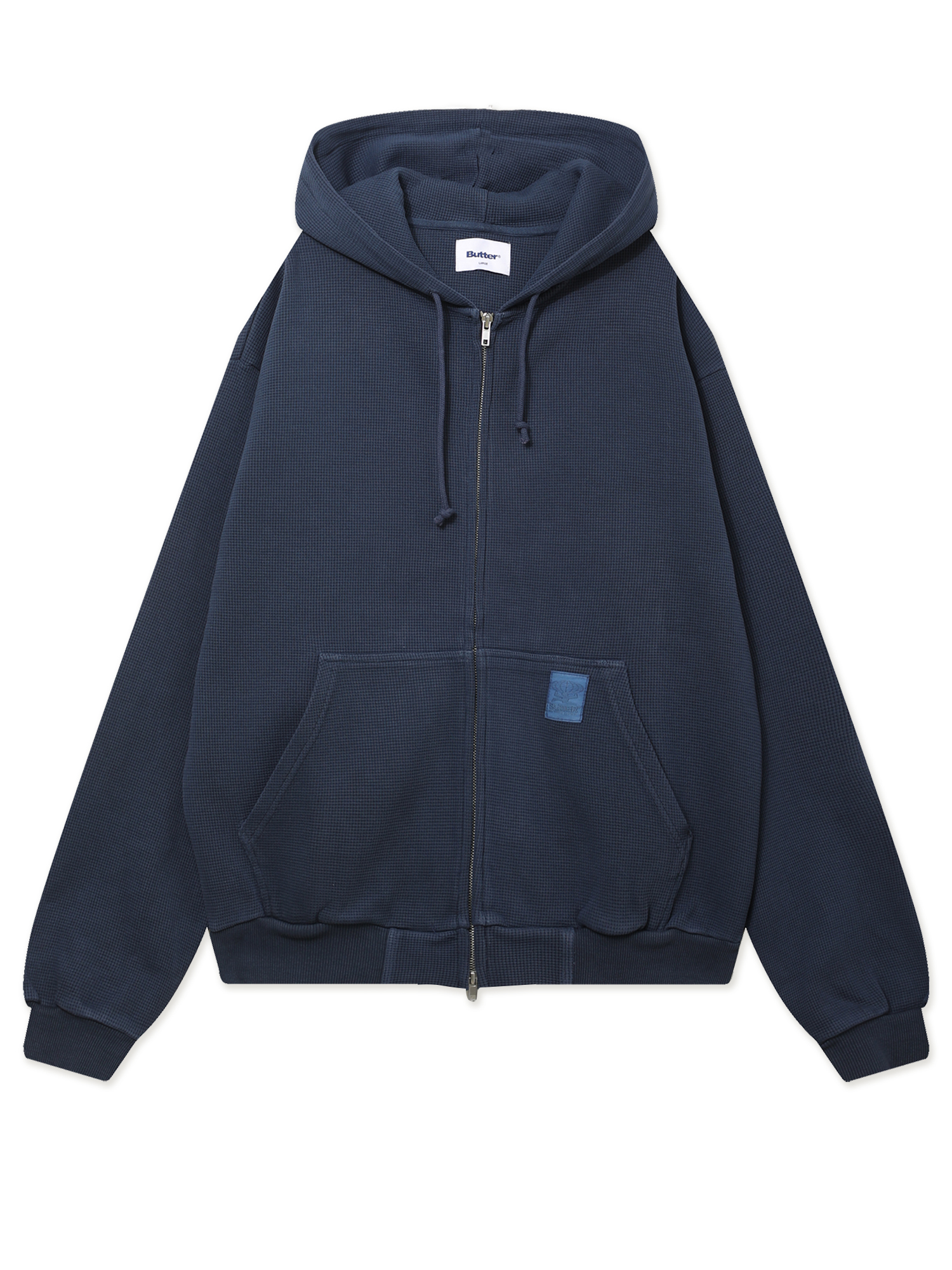 Толстовка с капюшоном на молнии Butter Goods из плотного вафельного материала. Изделие окрашено в готовом виде.
