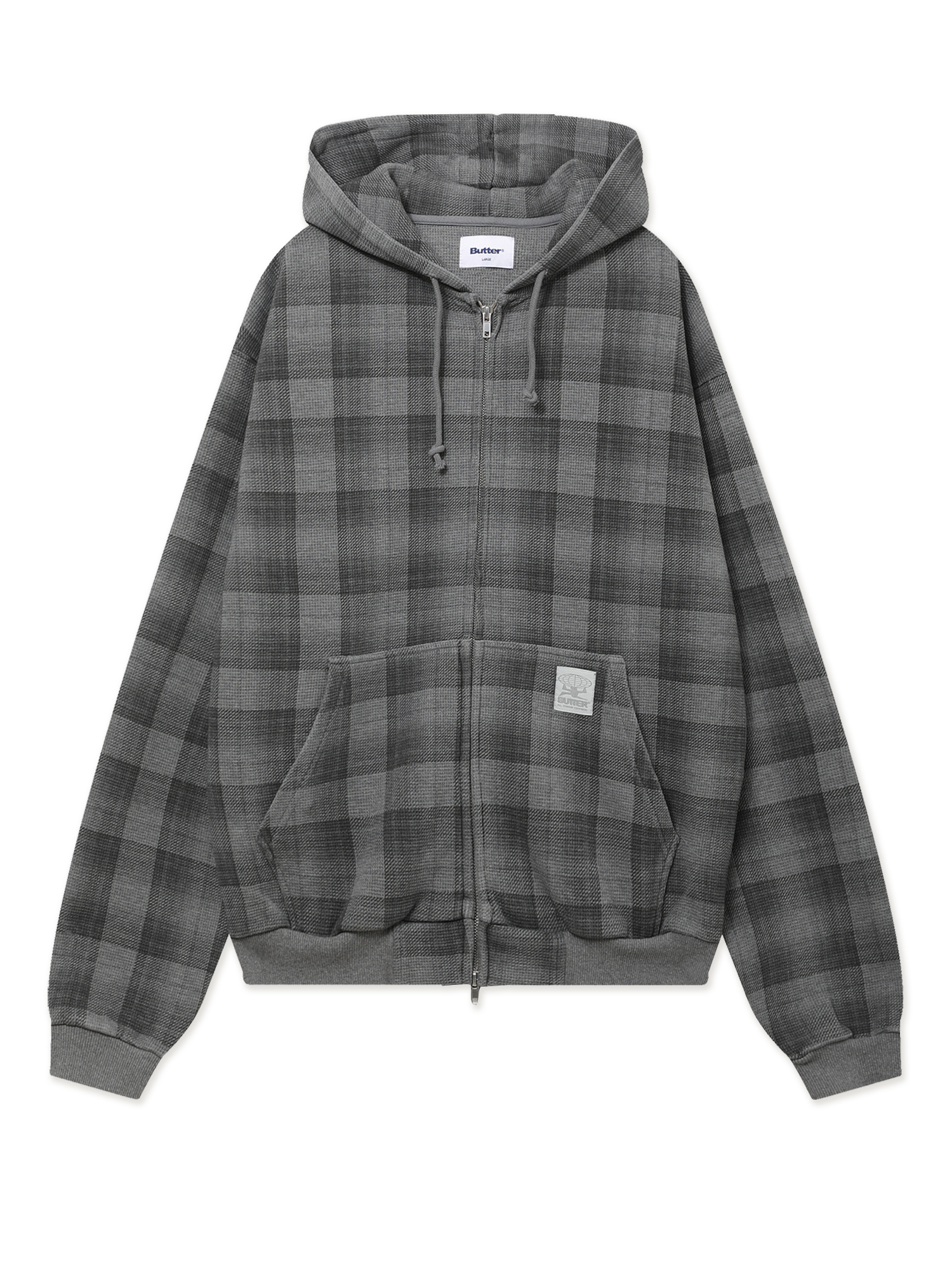 Толстовка с капюшоном на молнии Butter Goods из плотного вафельного материала. Изделие дополнено принтом в клетку.