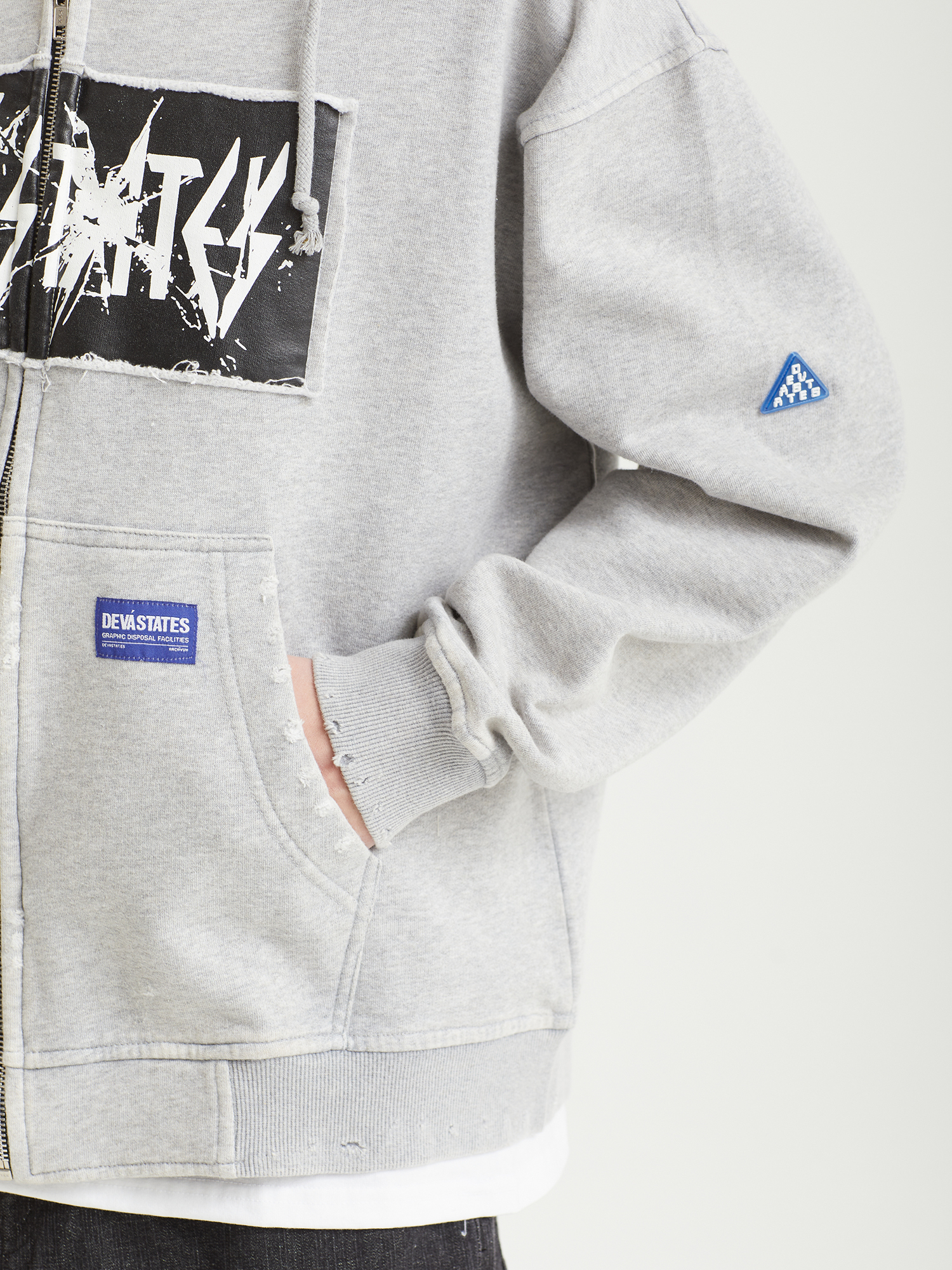 Худи на молнии Deva States из плотного хлопкового материала с ворсистой изнанкой. Изделие выстирано для минимизации усадки и создания винтажного эффекта.