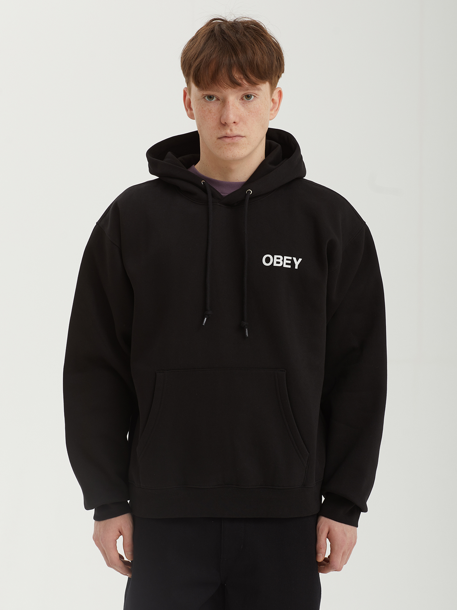 Худи Obey из плотного смесового материала с ворсистой изнанкой. Изделие дополнено сезонным принтом на спине и логотипом бренда на груди.