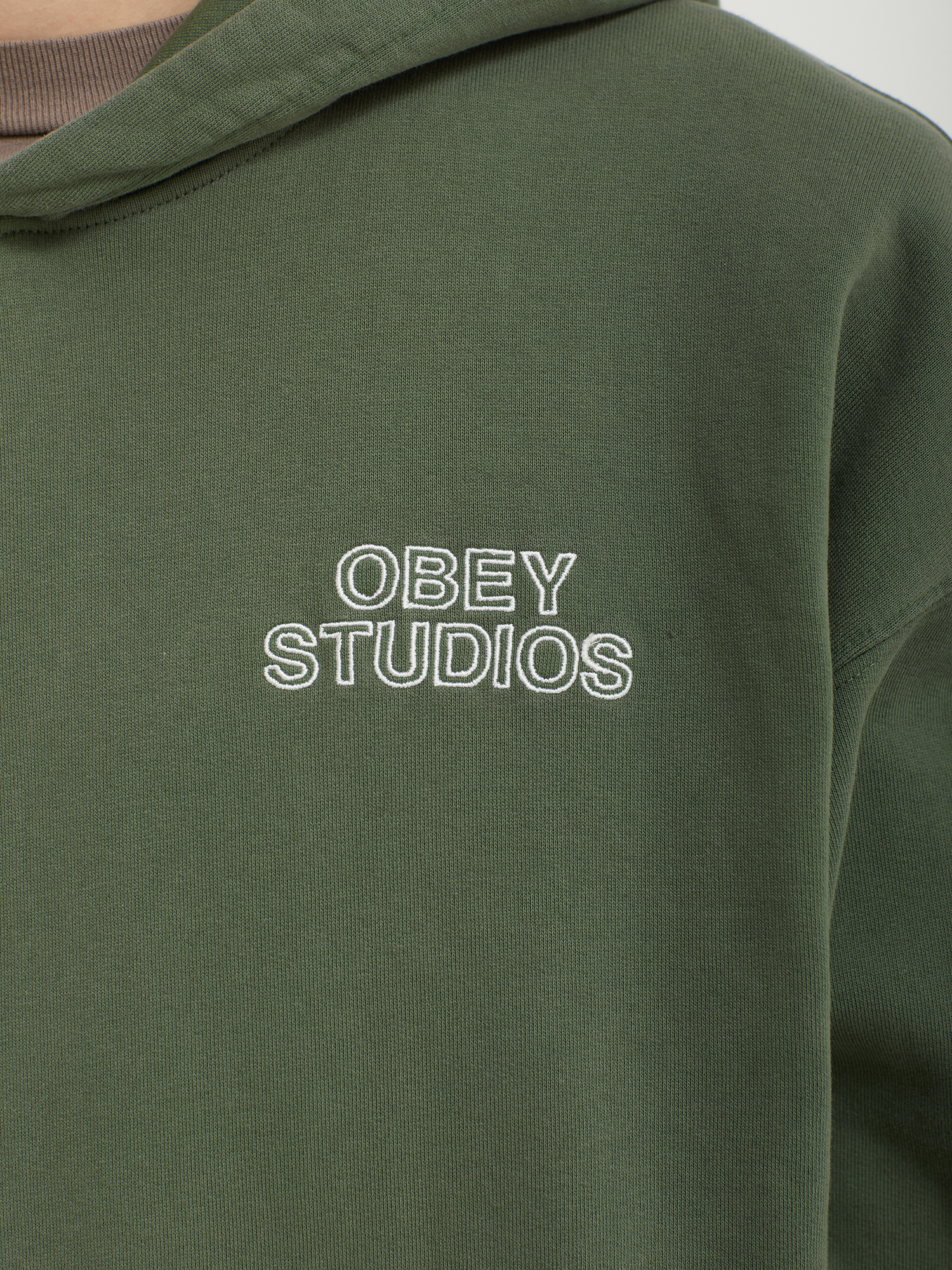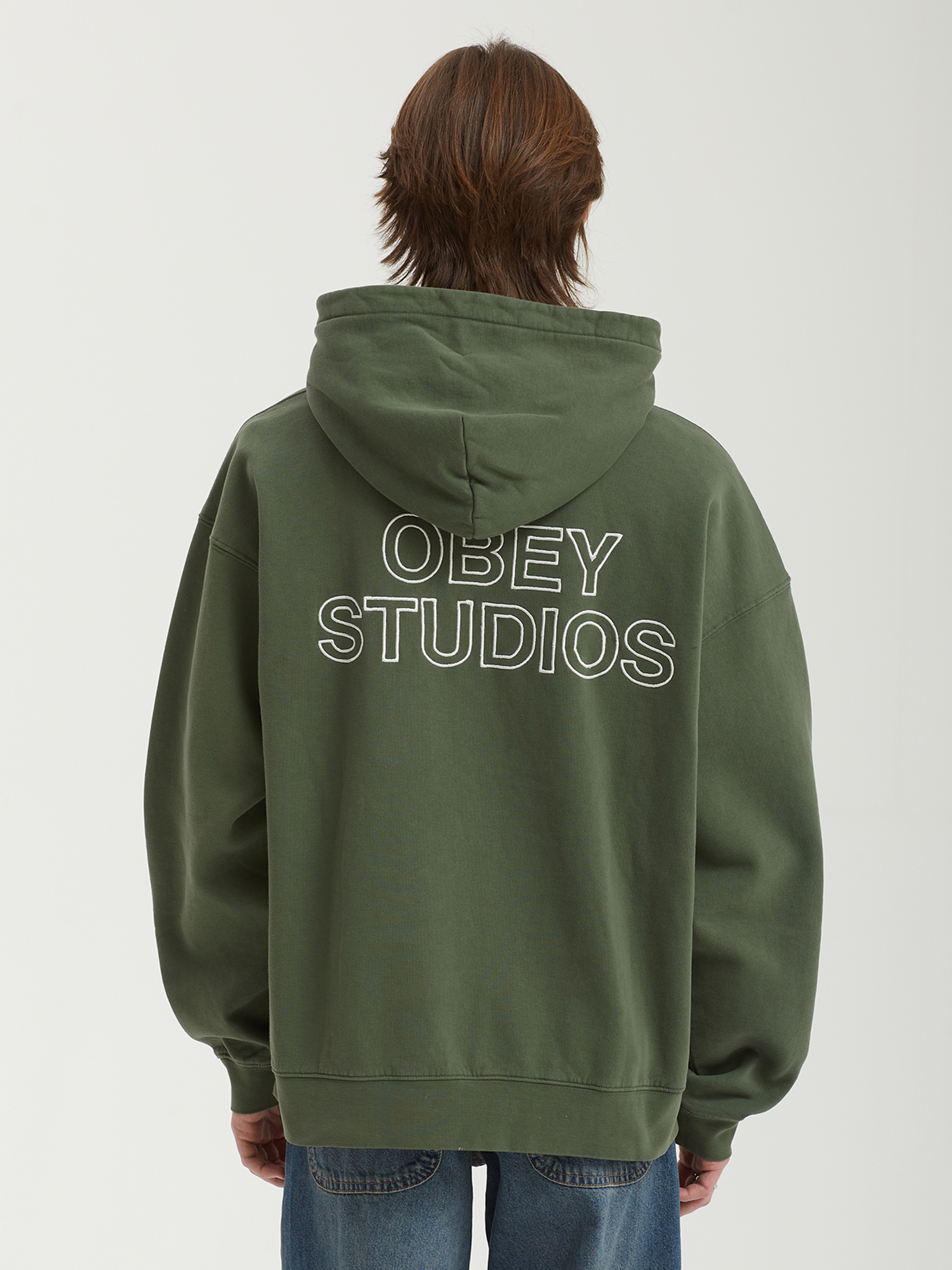 Худи с логотипами Obey из плотного хлопкового материала с ворсистой изнанкой. Изделие выстирано для получения винтажного эффекта.