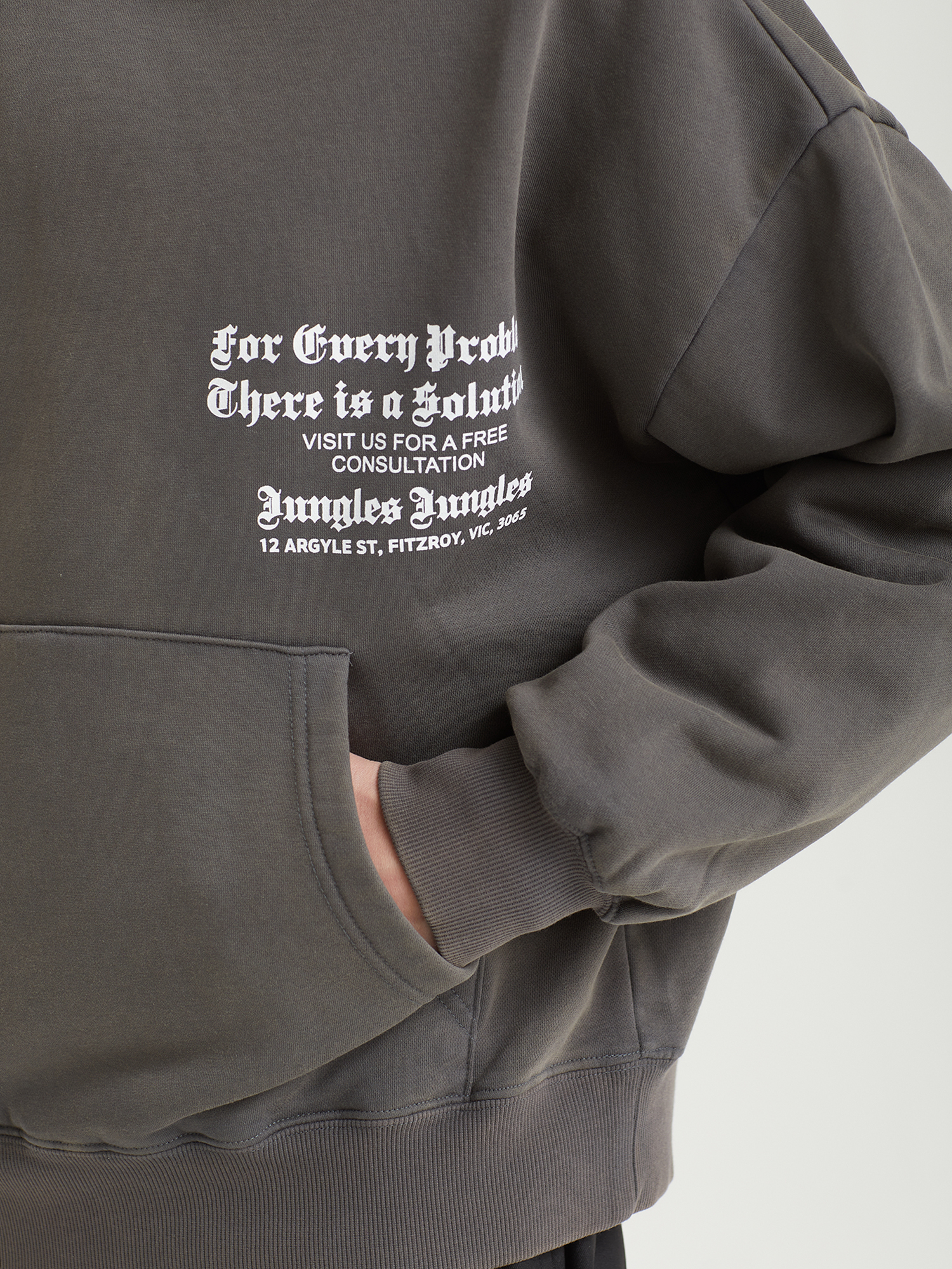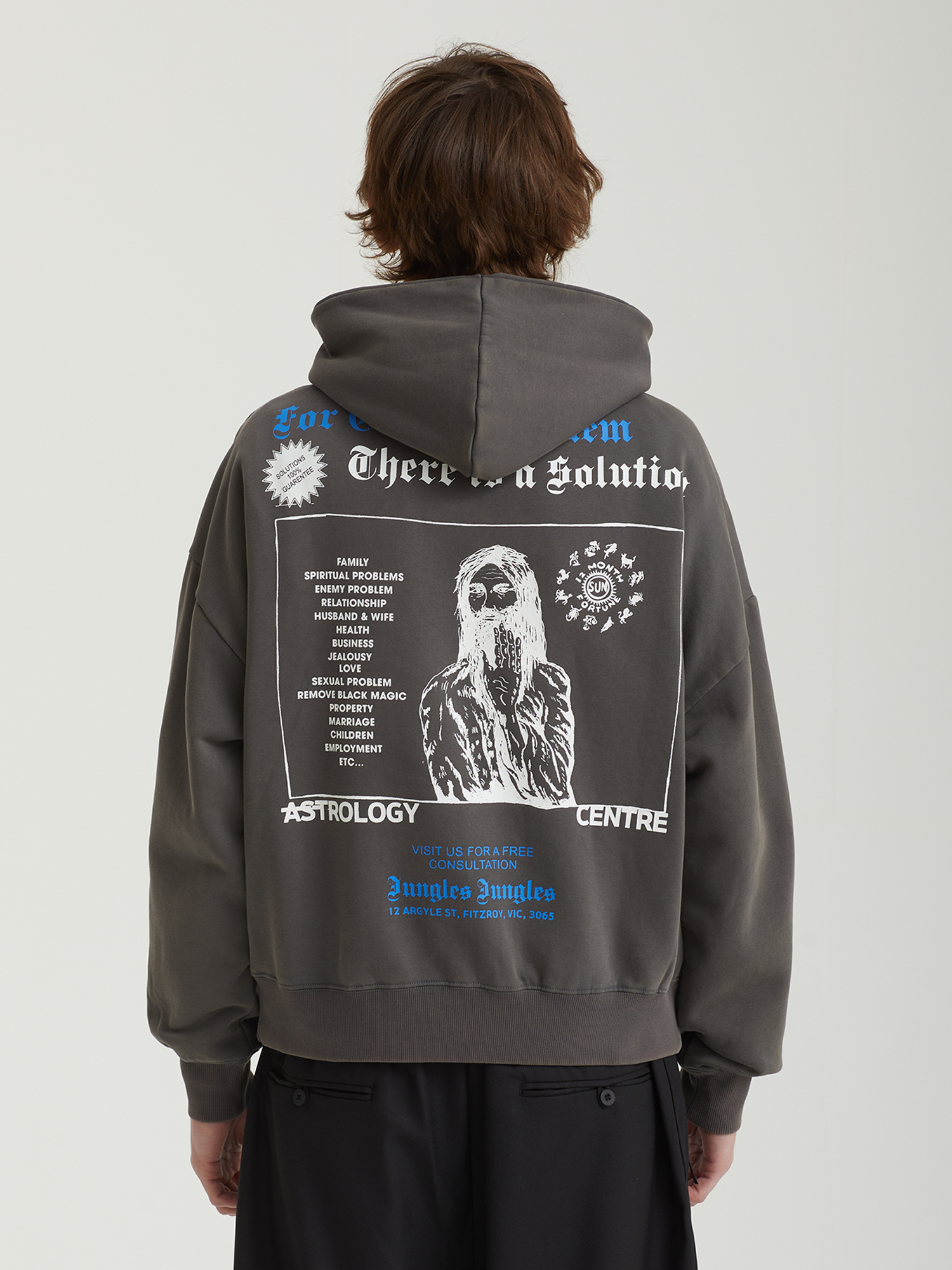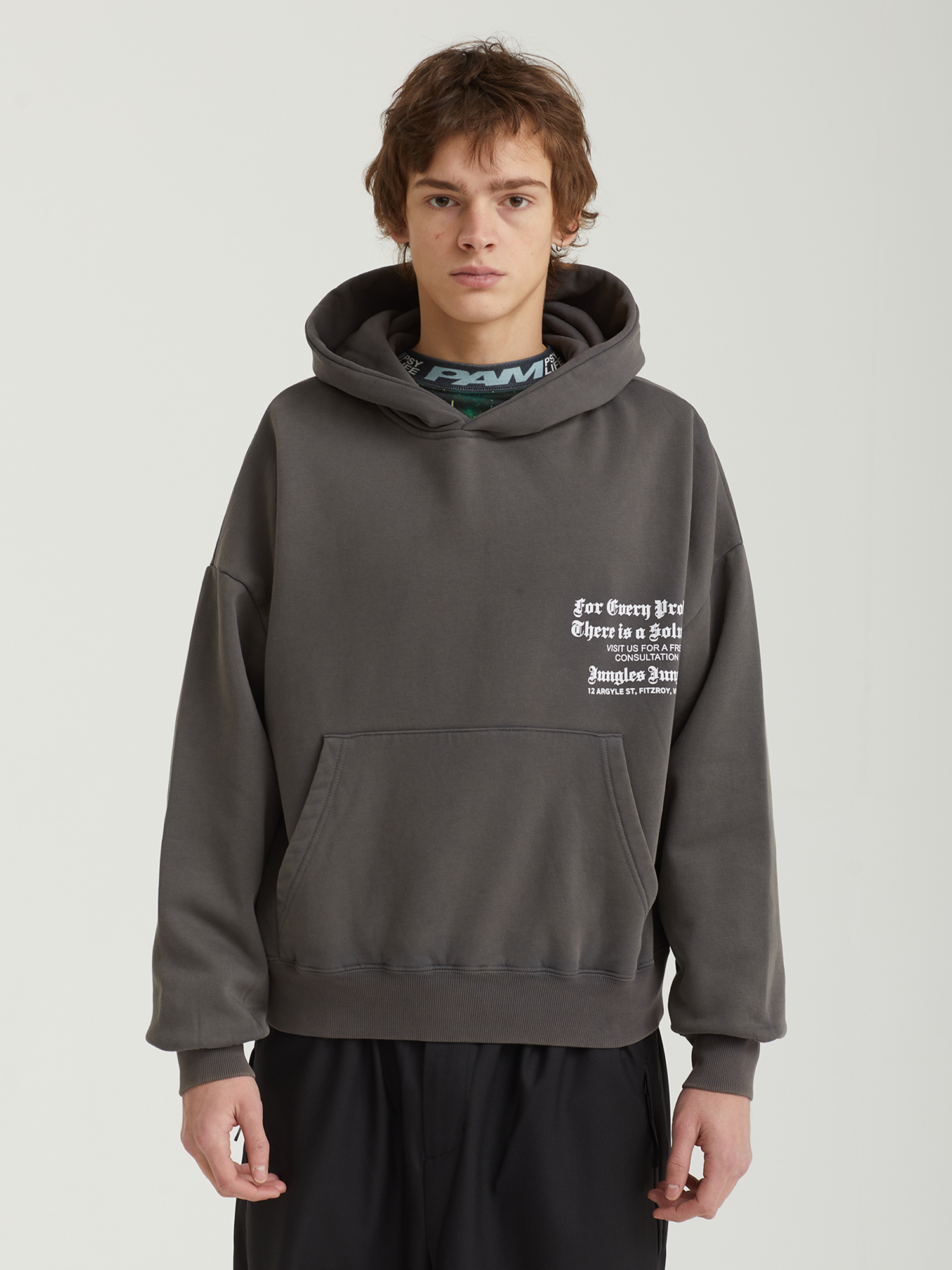 Худи Jungles Jungles из плотной ткани с ворсистой изнанкой. Изделие выстирано для получения винтажного эффекта и дополнено сезонными принтами. Бренд прошел сертификацию BSCI — инициативы по соблюдению социальных норм бизнеса.