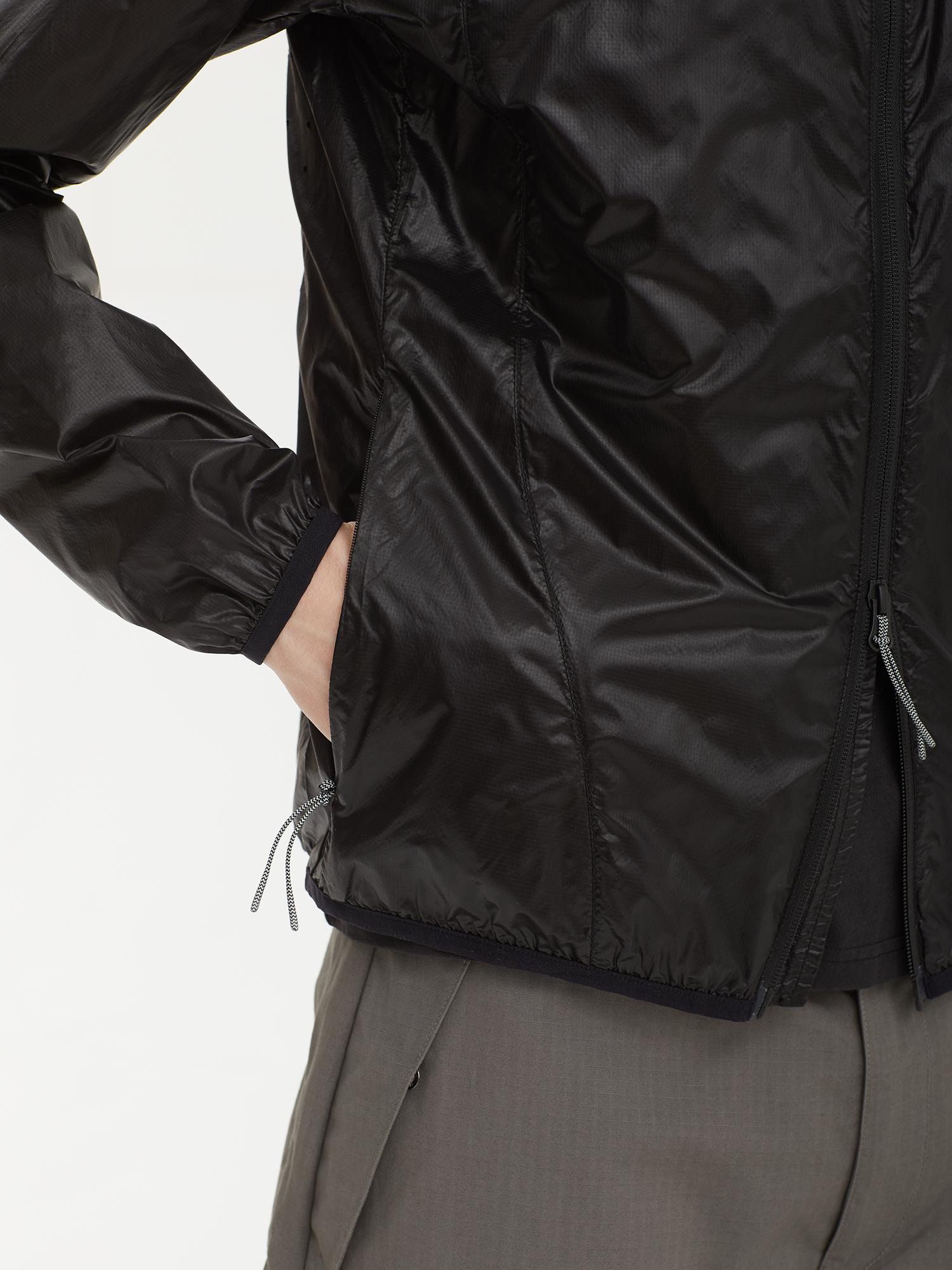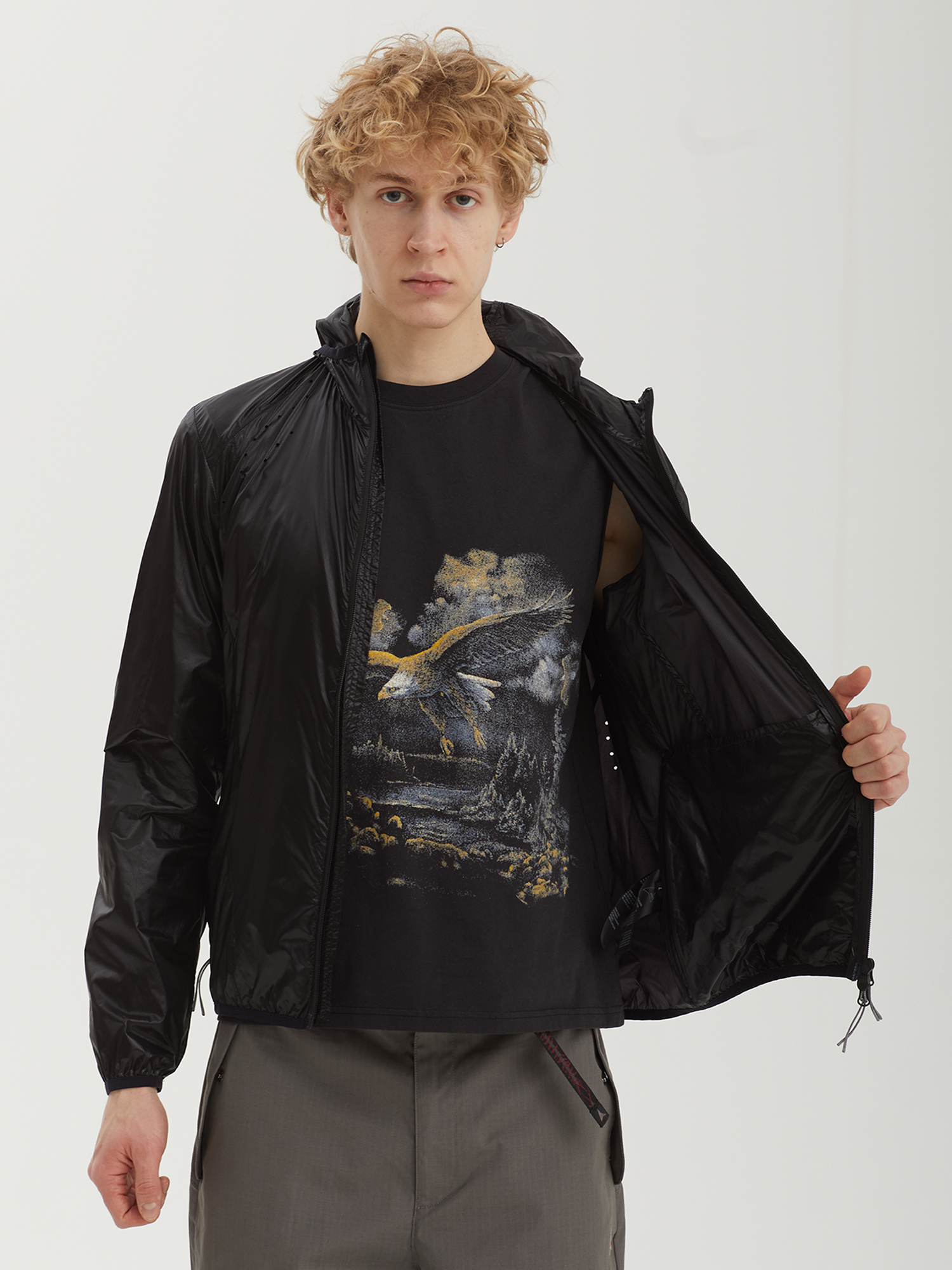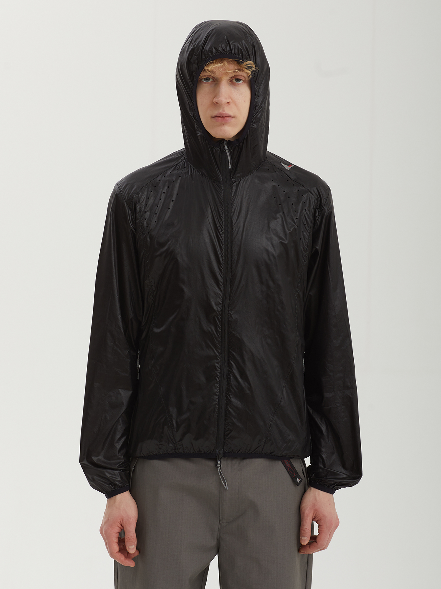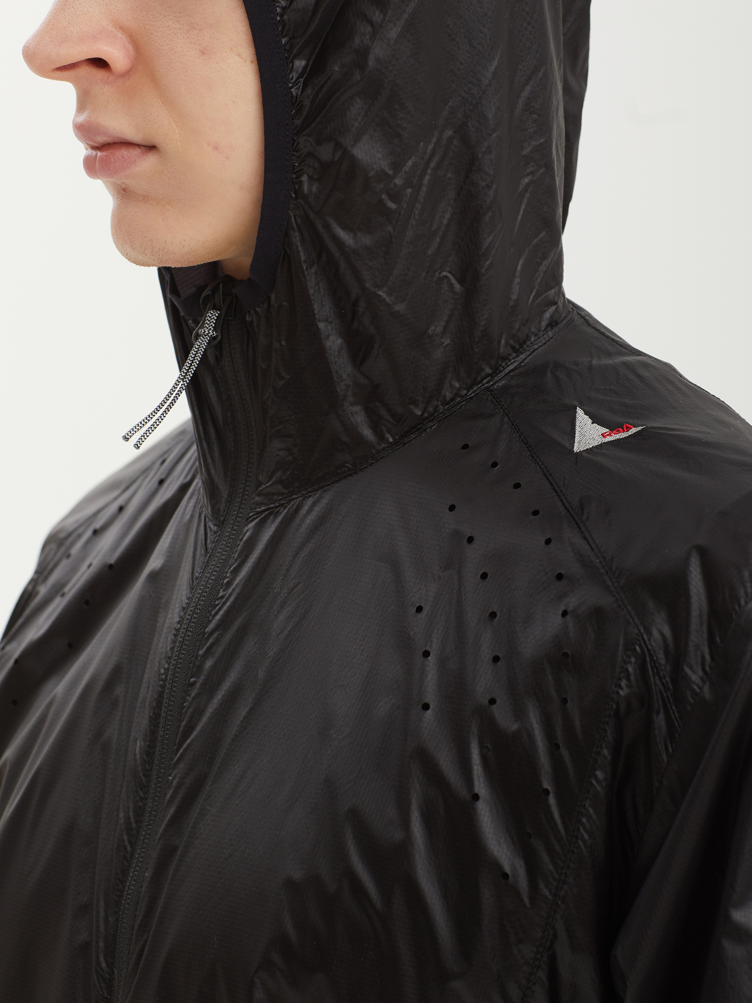 Ветровка с капюшоном ROA из экстра легкого микрорипстопа. Модель дополнена лазерной перфорацией для лучшей вентиляции, изделие складывается в карман.