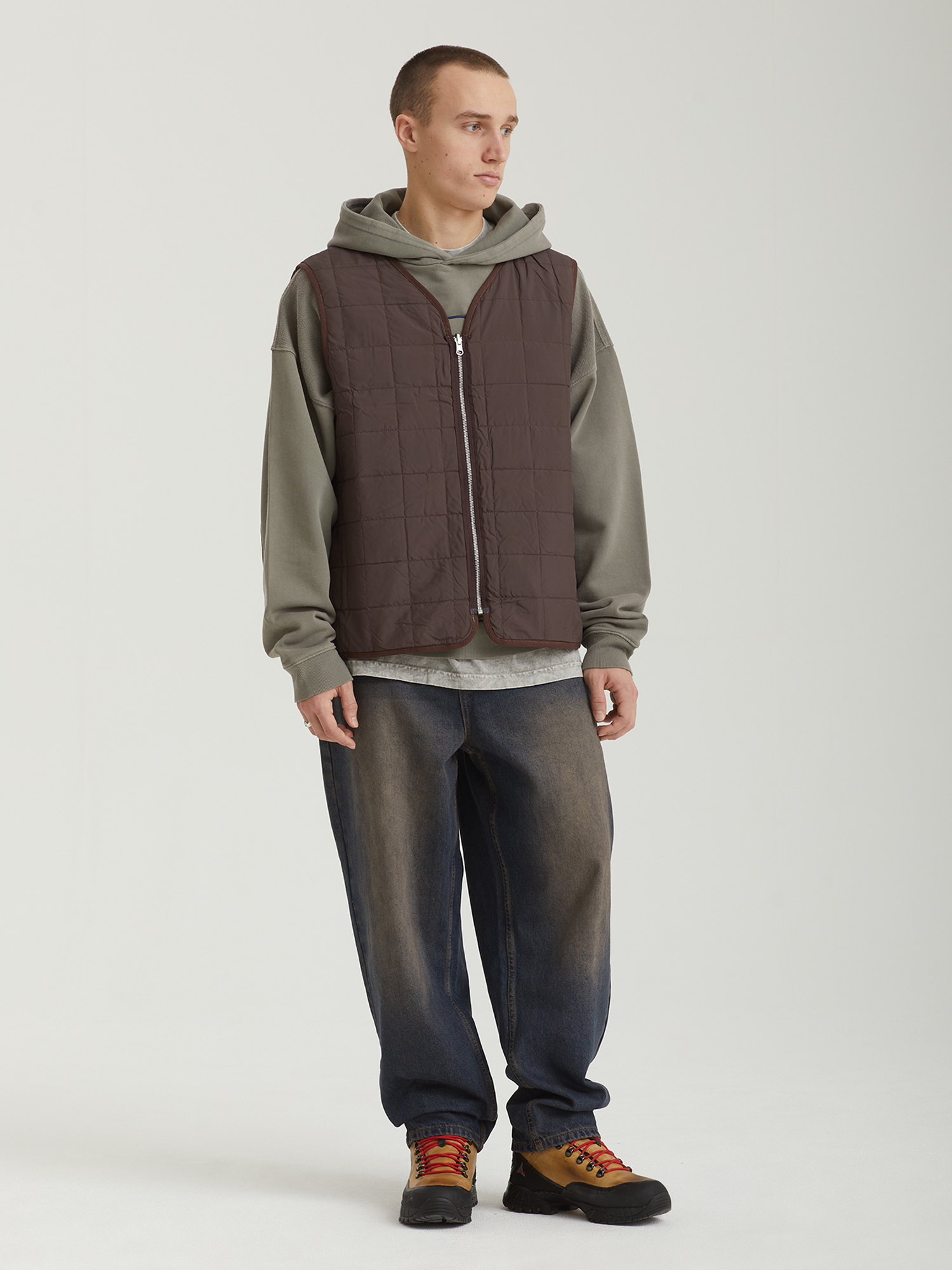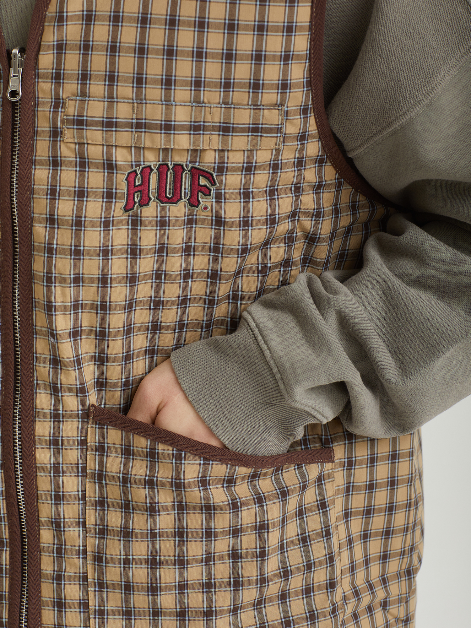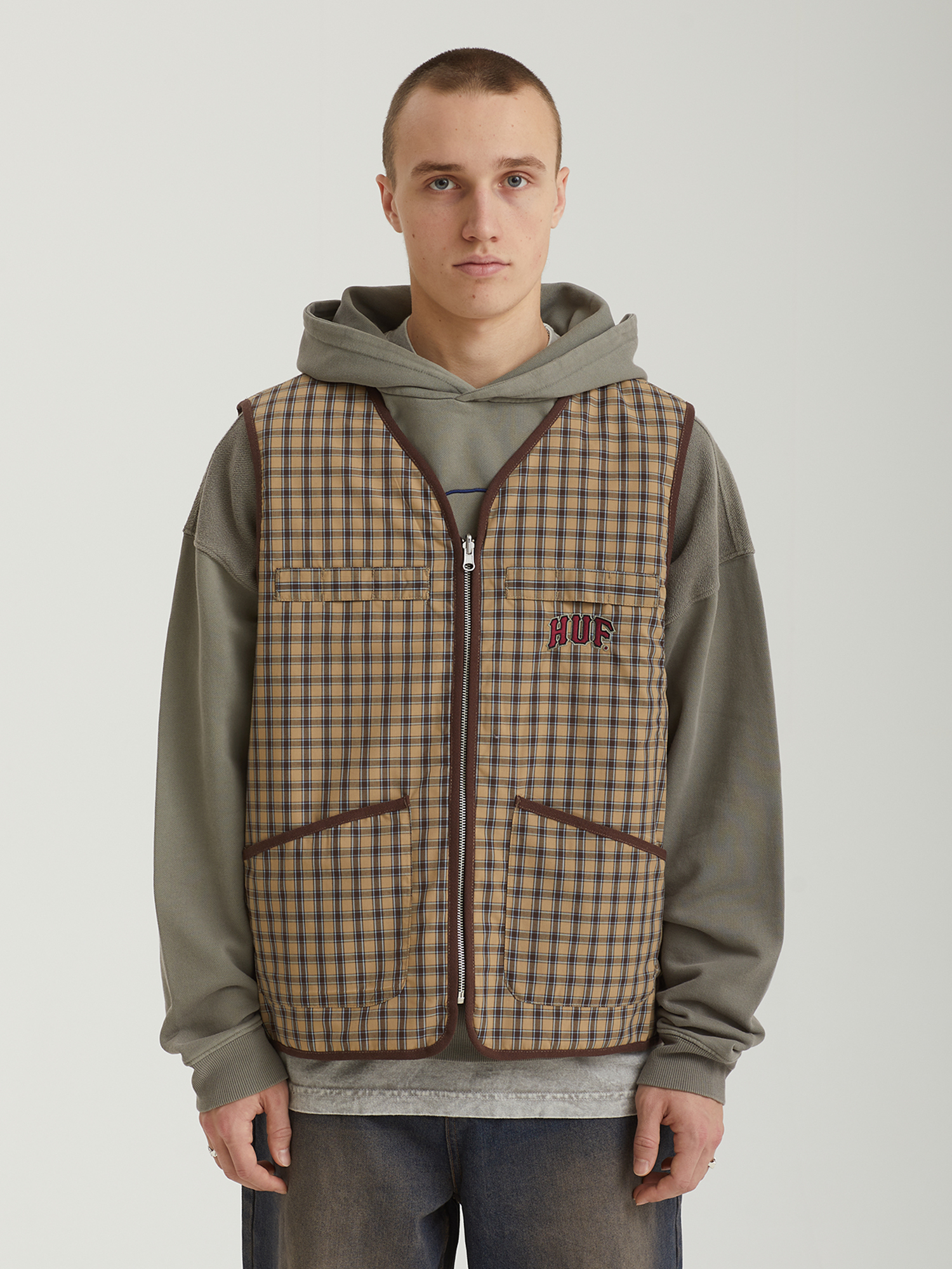 Двусторонний жилет на молнии Huf с верхом из фланелевой ткани с рисунком в клетку и подкладкой из нейлоновой тафты.