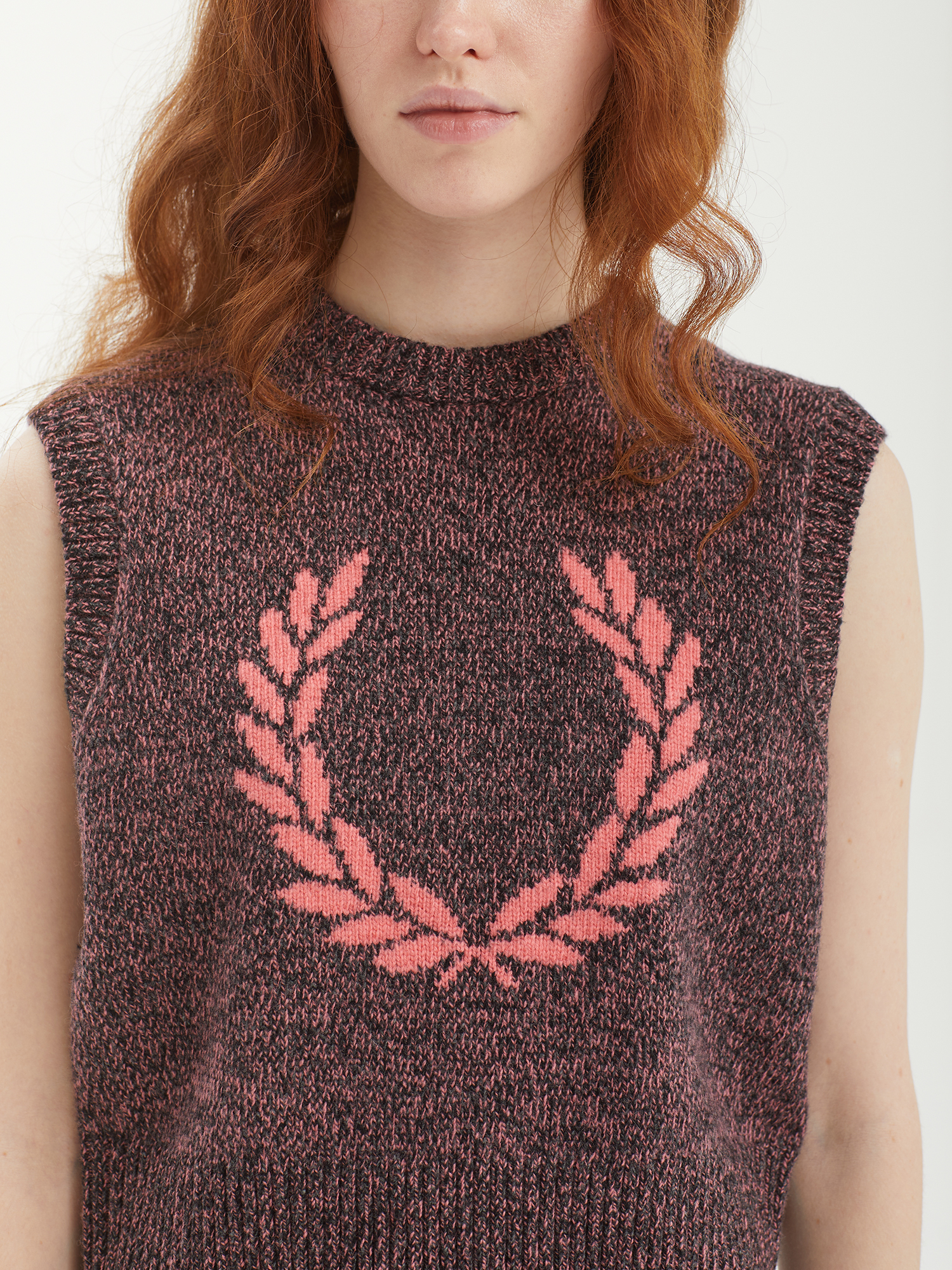 Жилет Fred Perry изготовлен из меланжевой пряжи на основе шерсти, сертифицированной по международному стандарту RWS, который гарантирует этичное и ответственное производство. Слегка расслабленный силуэт и ребристая отделка по краям обеспечивают комфортную посадку. Контрастный лавровый венок, выполненный в технике интарсии, служит узнаваемым акцентом и отражает наследие бренда.